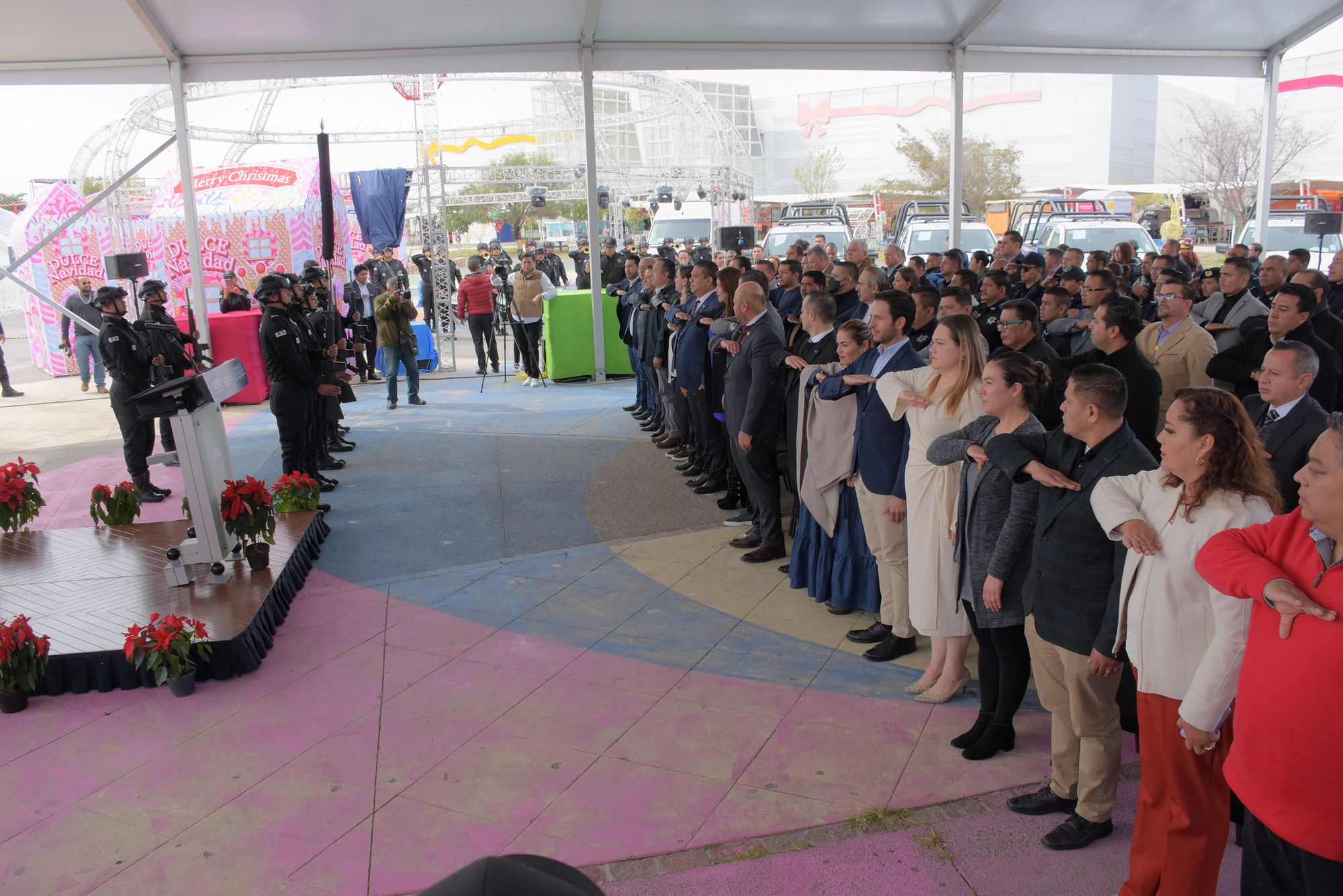 El equipo consta de una camioneta pick up modelo 2023 acondicionada como patrulla, dos cascos balísticos y seis chalecos antibalas, mismo equipo que se sumará al equipo ya existente al servicio de la corporación, haciendo más eficiente el trabajo de los elementos que prestan su servicio en la Dirección de Seguridad Pública Municipal, dirigida por Ricardo Camacho Contreras.