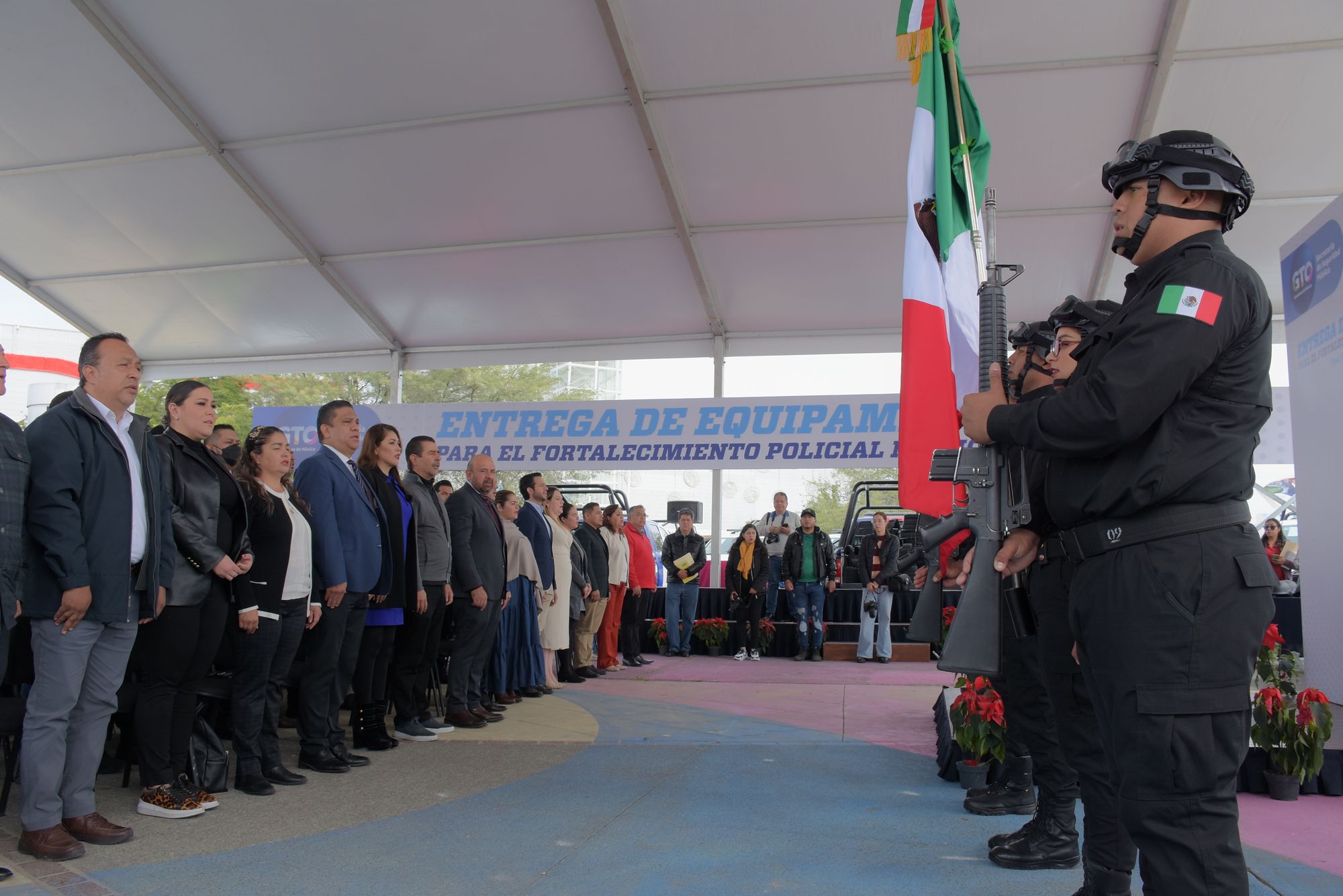 Abasolo, Gto. 13 de diciembre de 2023.- La Presidenta Municipal de Abasolo, Rocío Cervantes Barba, recibió de manos del Secretario de Seguridad Pública del Estado Alvar Cabeza de Vaca Appendini, el equipo correspondiente al Fondo de Aportaciones en Seguridad Pública, con el afán de mejorar de manera sustancial el servicio que se presta a la ciudadanía.