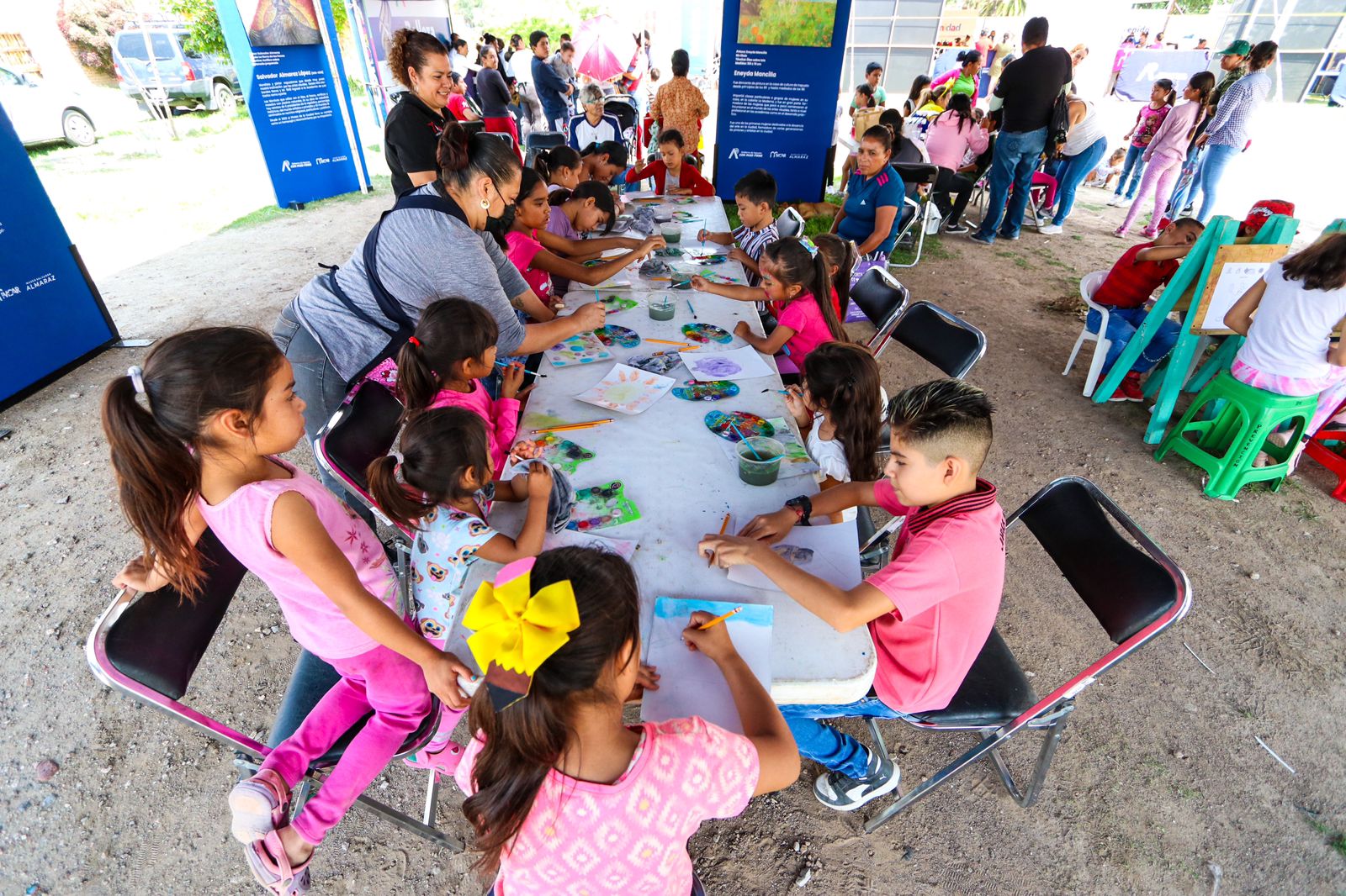 Mónica Alejandra Morado López, habitante de El Carrizalito, trajo a sus niños a disfrutar de las actividades, entre ellas pinta caritas y Museo en tu comunidad, a través de las cuales pudieron pasar un buen rato haciendo manualidades y conviviendo con más niñas y niños.