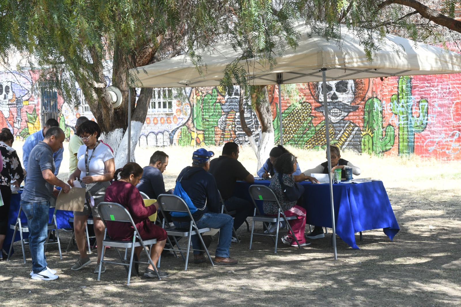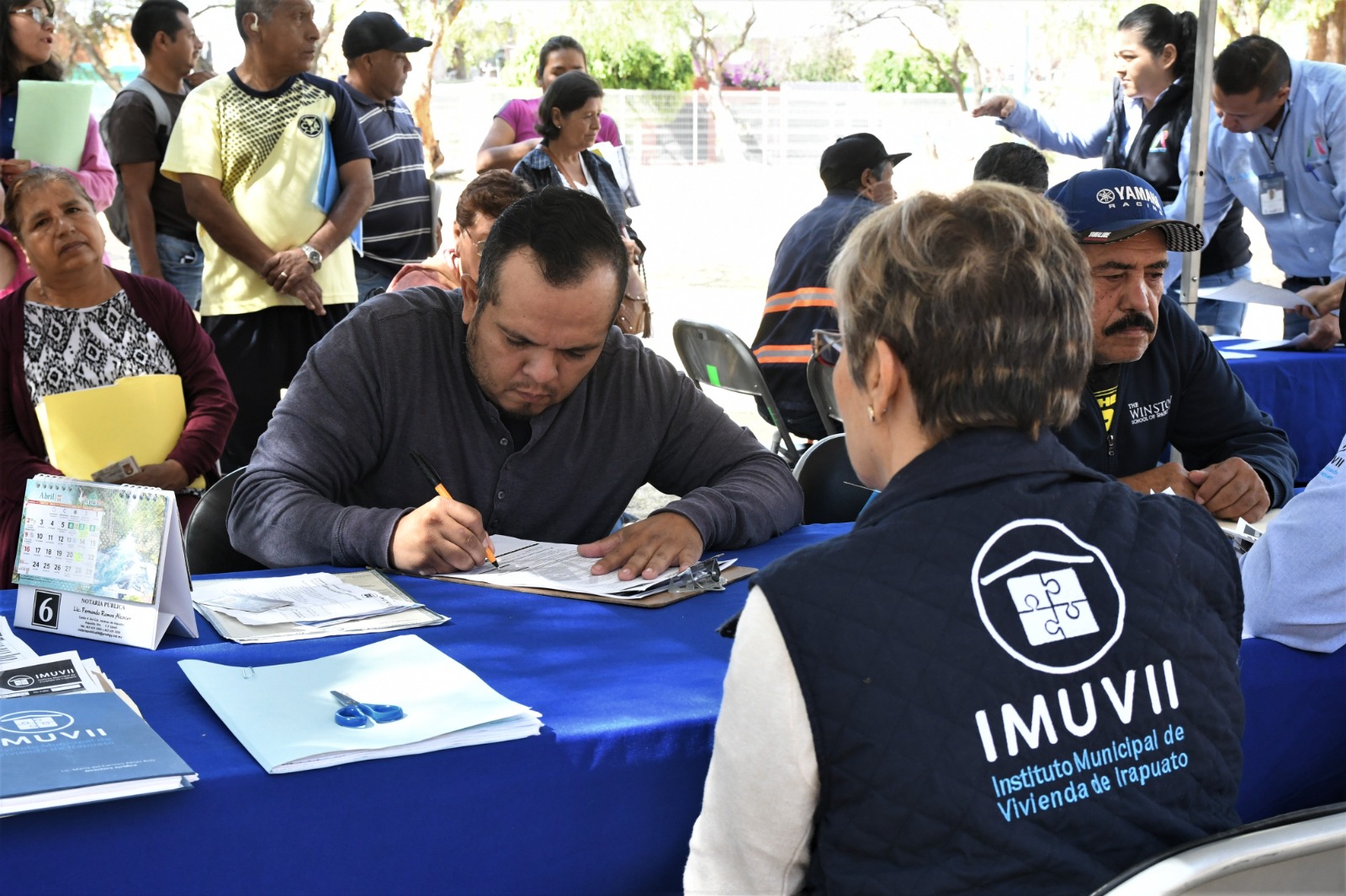 Irapuato, Gto. 15 de abril del 2023.- Más de 350 personas fueron atendidas por personal del Instituto Municipal de Vivienda de Irapuato (Imuvii) en el área de donación del fraccionamiento Las Liebres, como una forma de apoyo para acercarles la información para el trámite de escrituración.