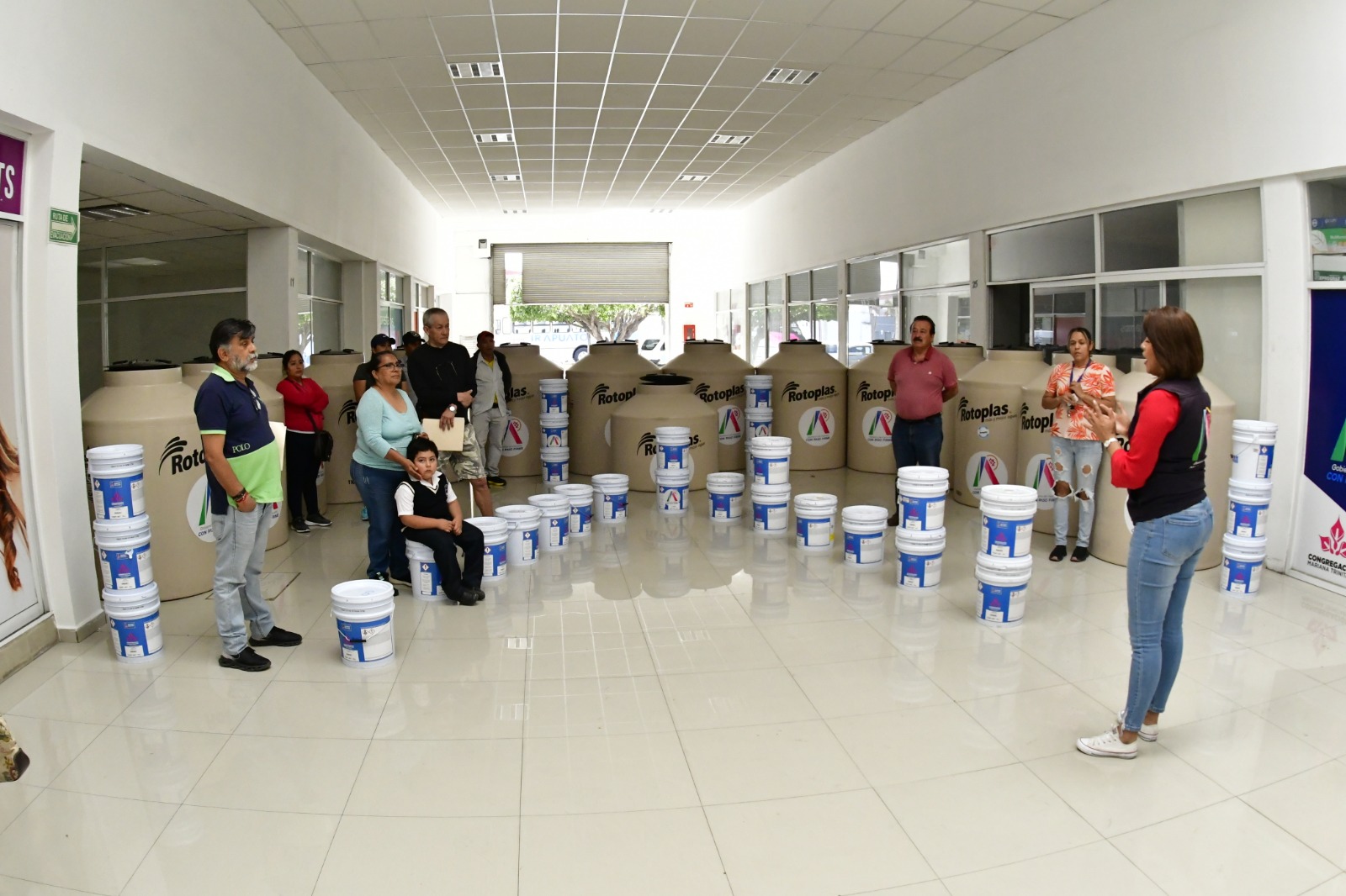 “Arrancamos las primeras entregas del mes de febrero de los programas subsidiados que nuestra presidenta municipal, Lorena Alfaro, gestiona ante la Congregación Mariana Trinitaria, en el cual se benefician familias con el programa ‘Mejoramiento de Vivienda’, estos productos que forman parte de ella, son los tinacos para el almacenamiento óptimo del agua, la pintura y el impermeabilizante”; explicó.