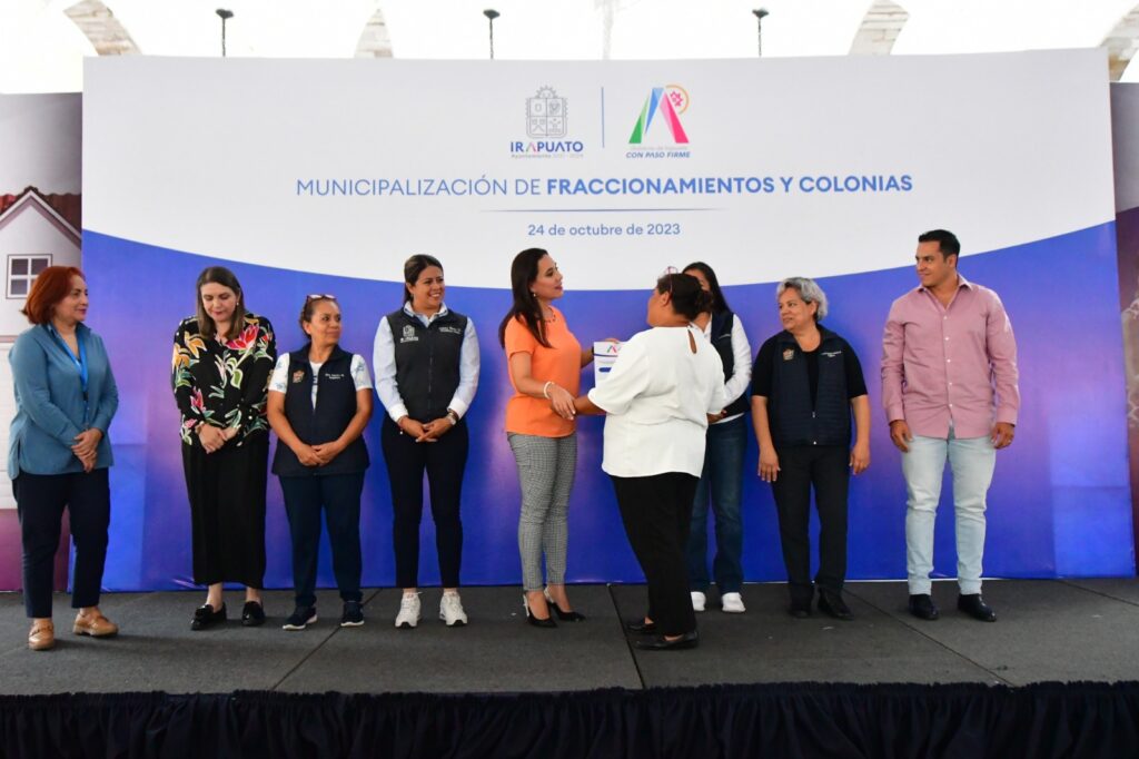 Irapuato, Gto. 24 de octubre del 2023.- Un total de 23 fraccionamientos y colonias oficializaron su entrega-recepción y municipalización ante el Gobierno Local, con lo que ahora tendrán la posibilidad de contar con los servicios básicos. Lorena Alfaro García, presidenta municipal, informó que esto es el resultado del Plan Integral de Ordenamiento Territorial, que busca …