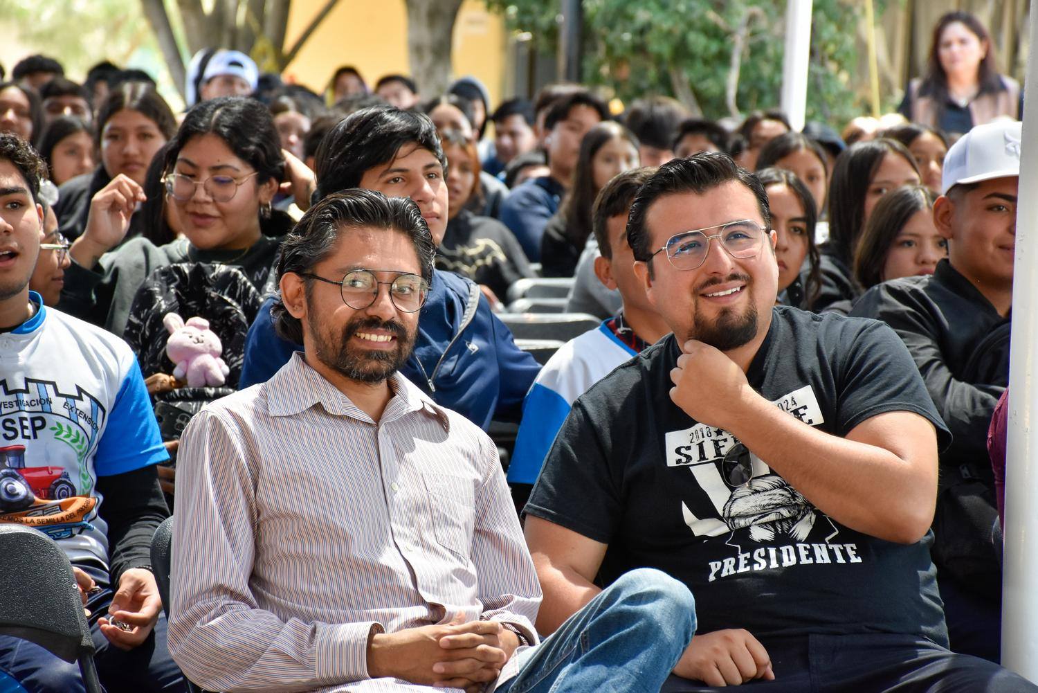 Abasolo, Gto. 09 de abril de 2025. Alumnas y alumnos del CBTA 174 de Rancho Nuevo de la Cruz, tuvieron la oportunidad de vivir una de las conferencias impartidas por los ponentes Pedro Salmerón Sanginés y Juan Manuel Hernández Anguiano, quienes presentaron la charla acerca de la gran batalla de Tenochtitlán, entre Mexicas contra Españoles y Tlaxcaltecas.