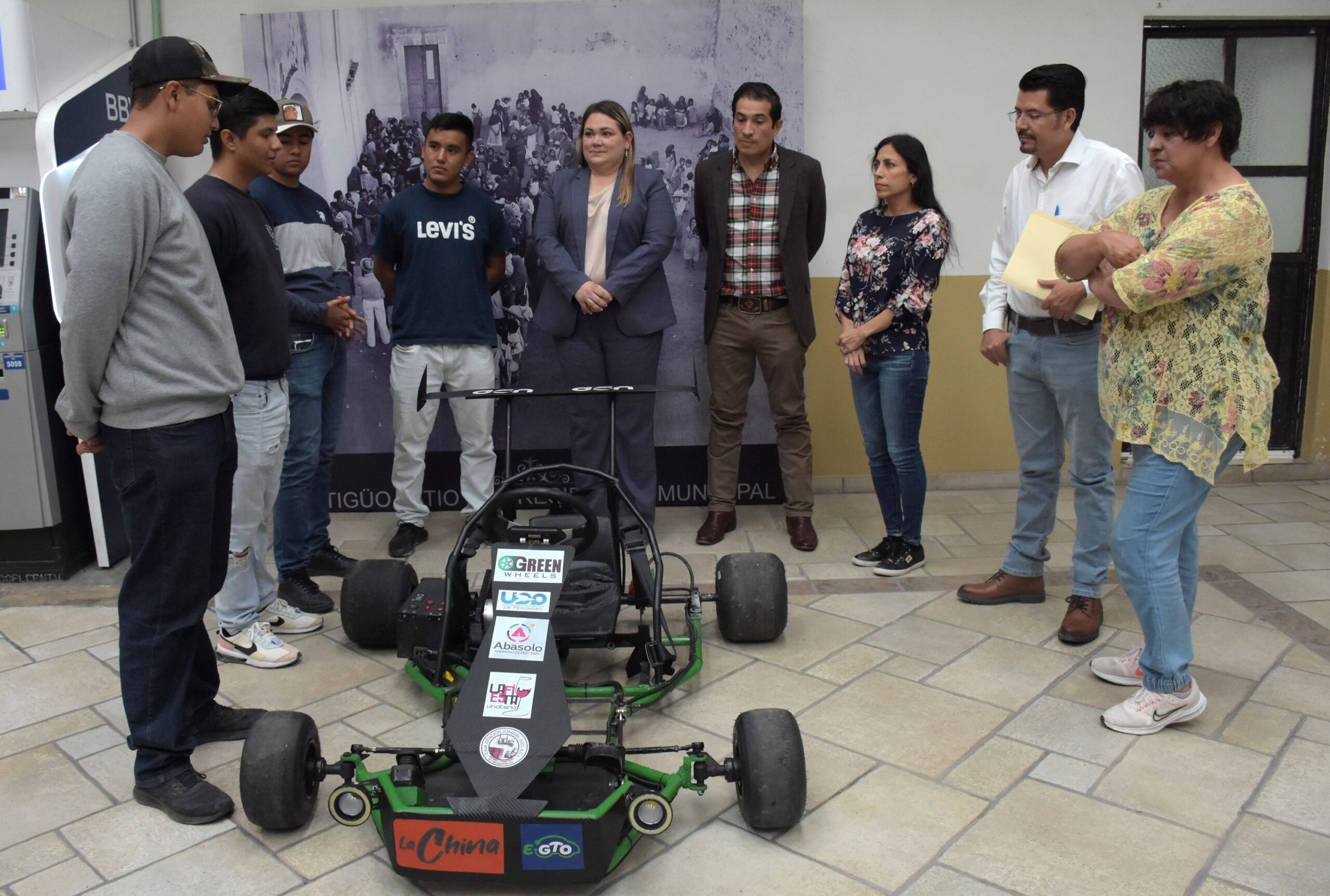Abasolo, Gto. 10 de octubre de 2023.- El grupo de estudiantes del 7º semestre de Ingeniería Automotriz de la Universidad Politécnica de Pénjamo UPP que ganó el tercer lugar en el Concurso Rumbo a la Movilidad Eléctrica de la Feria Industrial Hannover Messe 2023, visitaron a la Alcaldesa abasolense Chío Cervantes Barba, para agradecer el apoyo recibido para la realización de su proyecto de Automóvil Monoplaza, además de mostrarlo físicamente a ella y a miembros del H. Ayuntamiento.