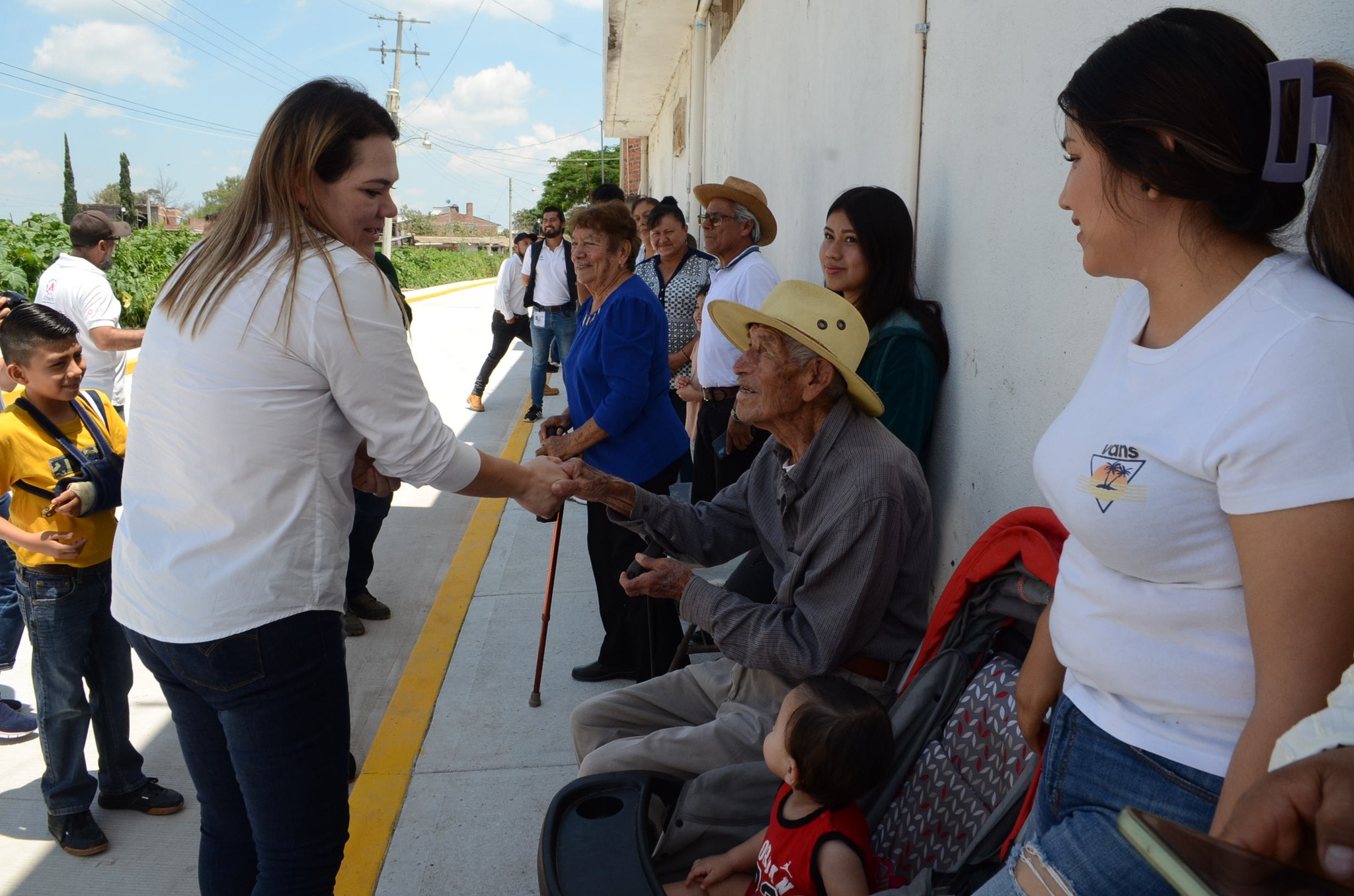 Acompañada por integrantes del H. Ayuntamiento, Directores de área y personal de diferentes dependencias, Chío Cervantes manifestó estar contenta porque cumplió con las familias de Estación Joaquín, a su vez, el Delegado de la Comunidad, Rubén González Torres, agradeció por estas obras que se realizaron al final de las gestiones hechas por él y vecinos de esta zona de la Comunidad, como la Sra. Sara Cristina Elizarraraz.