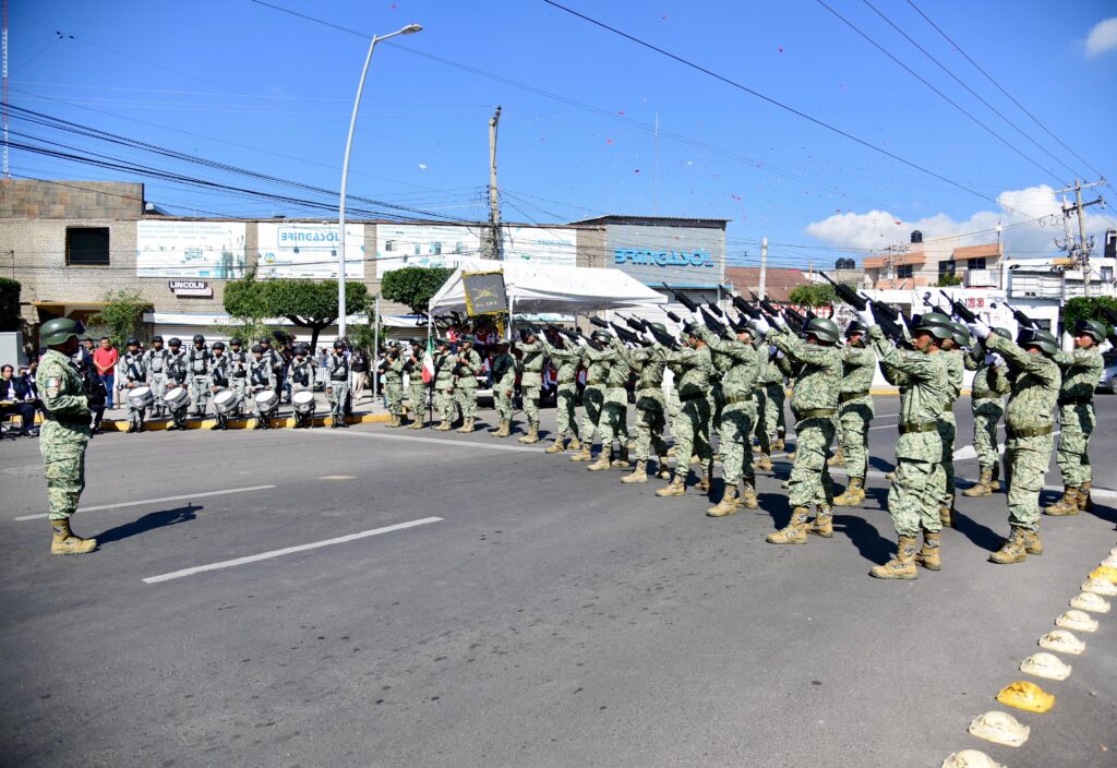 En el evento participaron la Banda Municipal, Bachillerato Bivalente Militarizado, Pentatlón y las escuelas primarias Insurgentes y Niños Héroes.