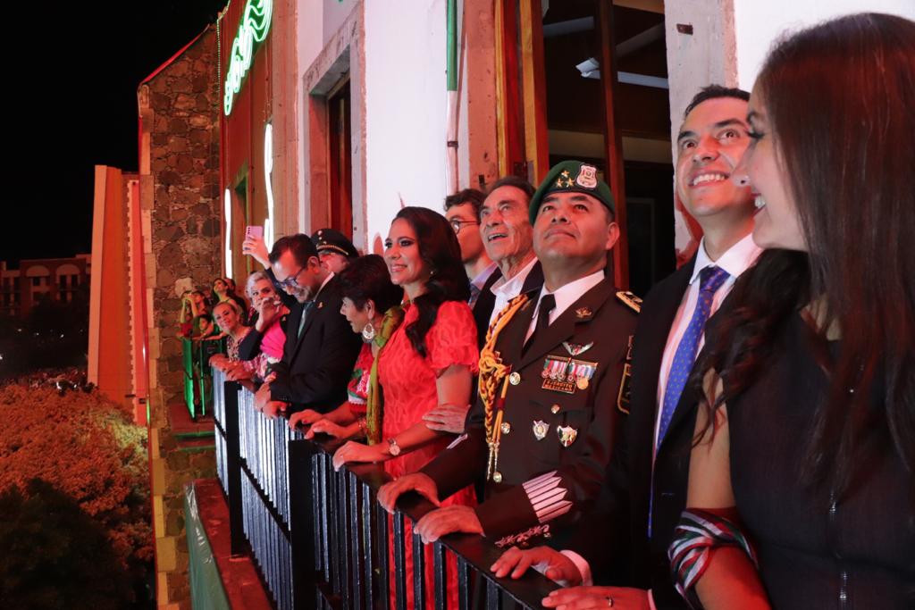 La ceremonia del tradicional Grito de Independencia, fue encabezada por la presidenta municipal, Lorena Alfaro García, quien acompañada de integrantes del Ayuntamiento, recordó a las y los héroes que nos dieron patria y libertad.