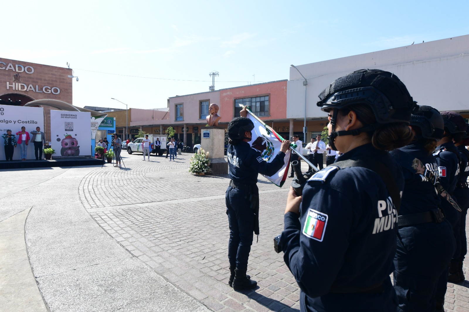 Durante la ceremonia se contó con la participación de alumnos de la escuela primaria Miguel Hidalgo, la escolta y Banda de Guerra de la Secretaría de Seguridad Ciudadana y la Banda Municipal.