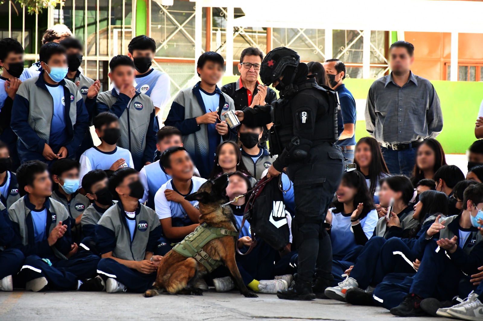 Integrantes del Grupo Canino K9, hicieron una demostración de su rutina, además de que se les impartieron pláticas, por parte de elementos de la Coordinación de Protección Civil, sobre acciones de prevención y la manera de conformar brigadas para actuar ante fenómenos o desastres naturales.