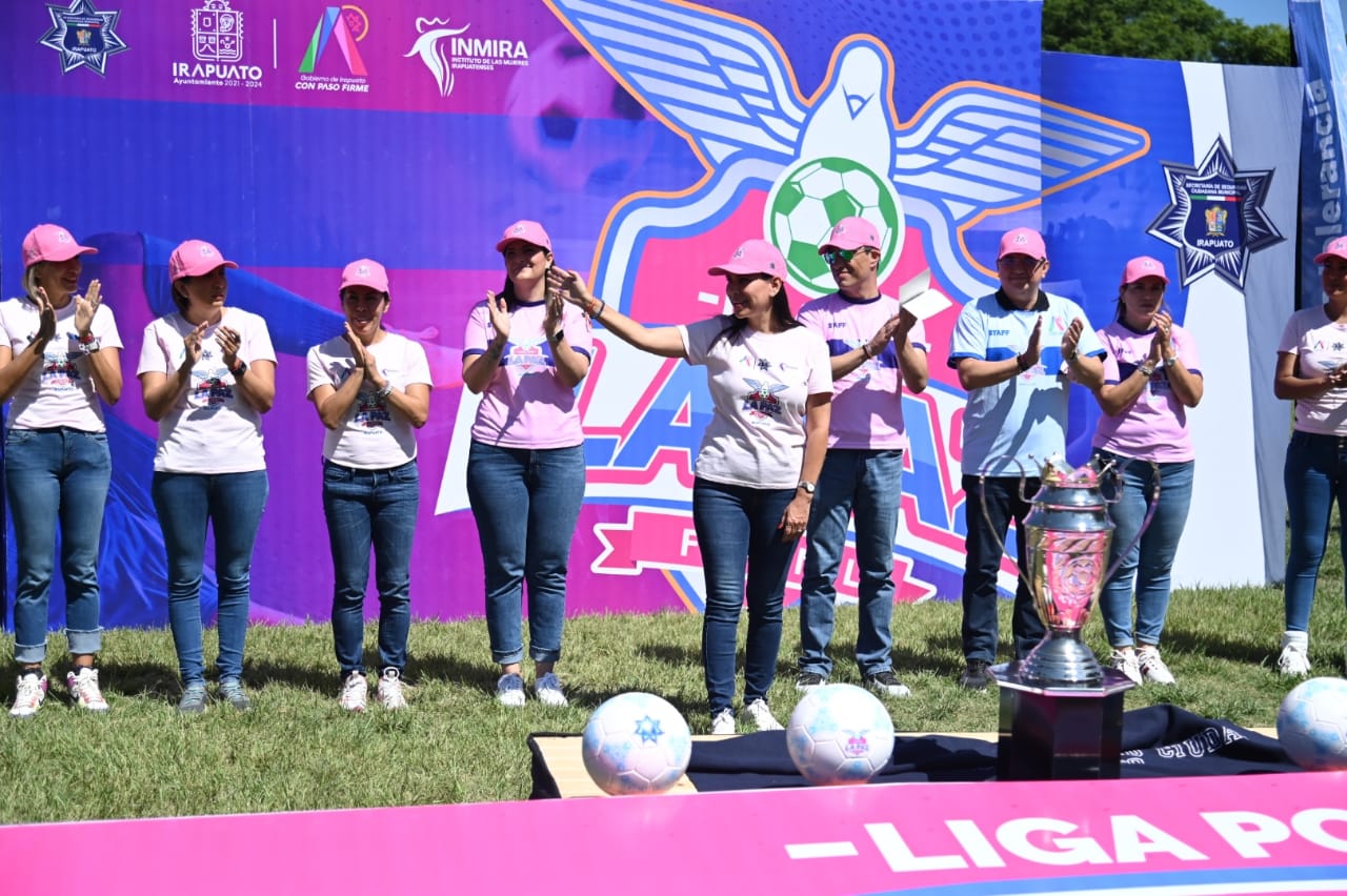 Irapuato, Gto. 10 de septiembre del 2023.- Para desarrollar el talento deportivo femenil, fomentar la sana competencia, compañerismo, amistad, trabajo en equipo y la convivencia social, el Gobierno Municipal, en un trabajo transversal entre la Secretaría de Seguridad Ciudadana y el Instituto de las Mujeres Irapuatenses (Inmira) dió inicio a la Liga por la Paz Femenil.