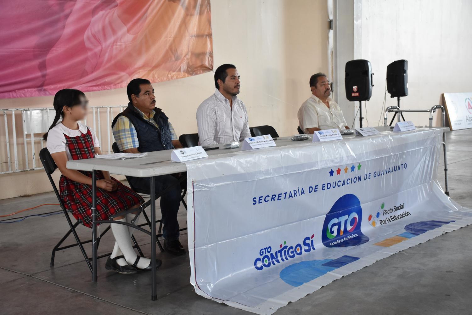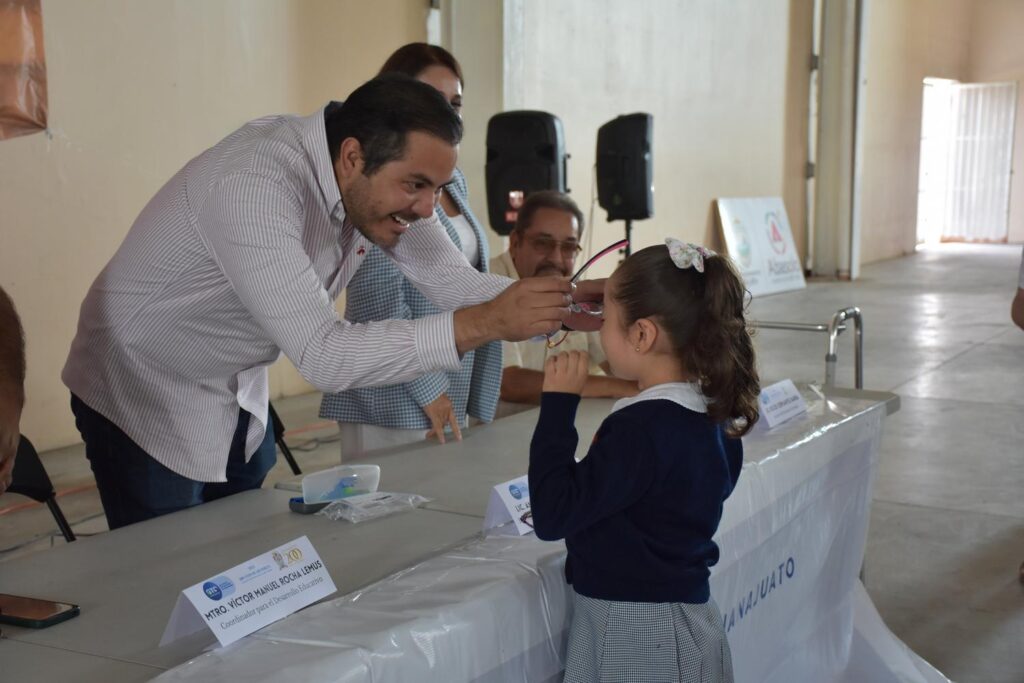 Abasolo, Gto. 09 de julio de 2024.- Este martes 09 de julio, en las instalaciones del Polifórum Miguel Hidalgo, se realizó la entrega de lentes del Programa Ver Bien para Aprender Mejor, en el evento de entrega estuvieron presentes el Delegado Regional de Educación Anselmo Conejo Cornejo, la Coordinadora de Vinculación Interinstitucional de Salud Mental e Integral de la Secretaría de Educación de Guanajuato, Sandra Josefina Arrona Luna, el Coordinador para el Desarrollo Educativo, Víctor Manuel Rocha Lemus, en representación de la Presidenta Municipal de Abasolo, Chío Cervantes Barba, acudió el Director de Planeación, Juan José González Márquez y en representación de los alumnos que recibieron sus lentes, participó la alumna de sexto grado de la Escuela Primaria Vicente Guerrero, Alexa Labrador Hernández.
