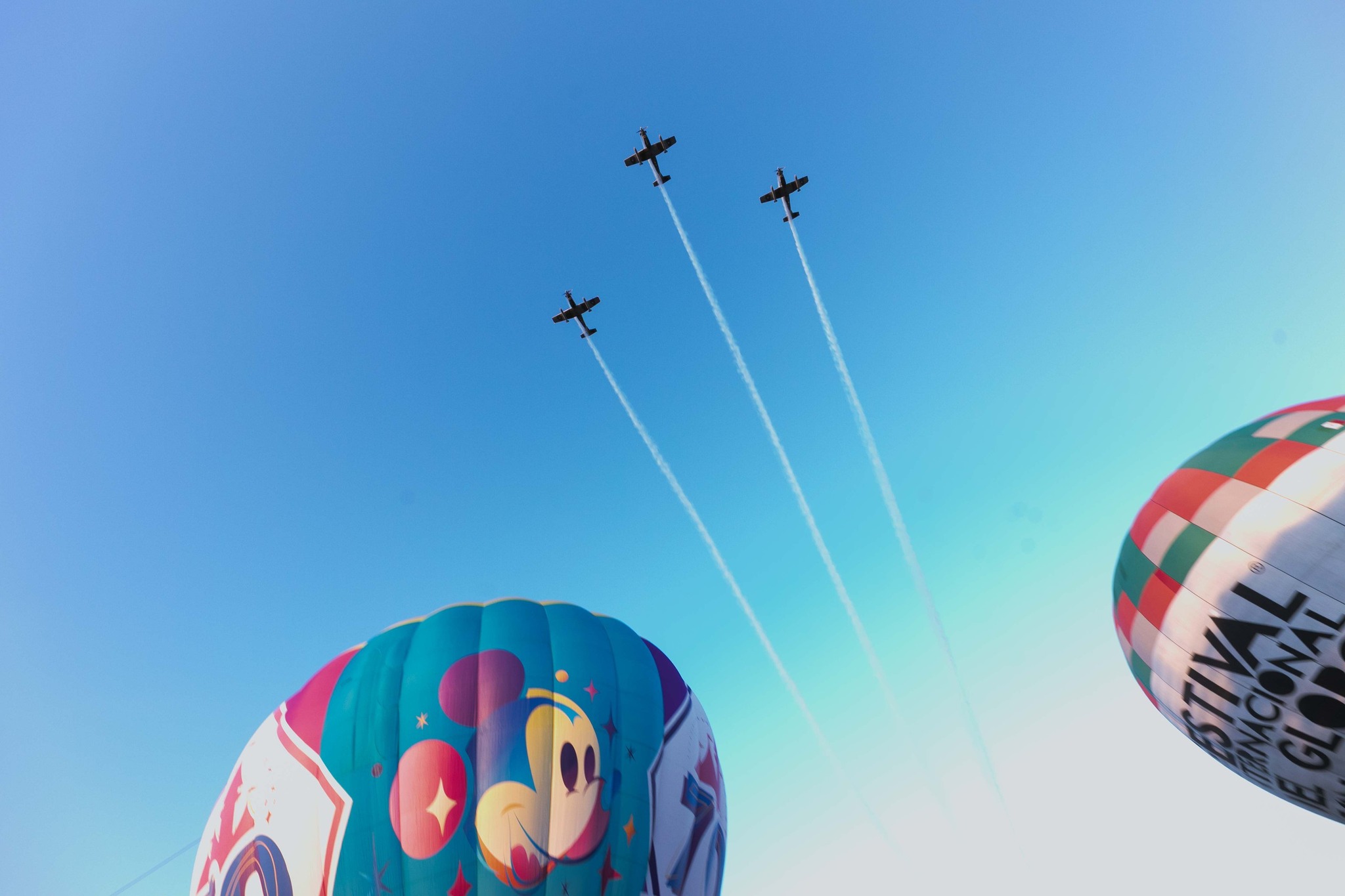 Mientras miles de asistentes cantaban al unísono el Himno Nacional, los pilotos de los globos aerostáticos activaron su lanzallamas al mismo tiempo, acción que provocó la emoción de las y los presentes.