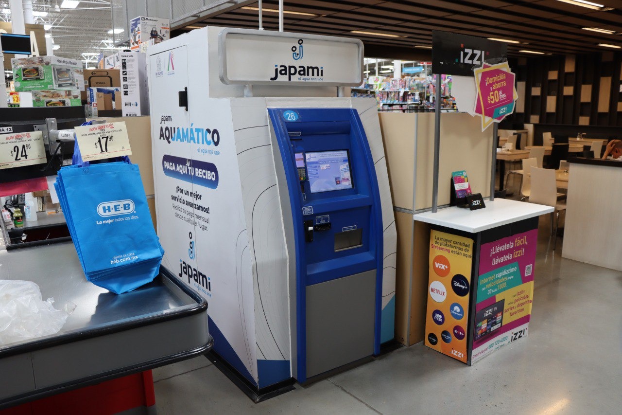 Los cajeros automáticos se ubican en las plazas Cibeles, San Roque y Jacarandas, así como en las instalaciones del supermercado HEB, habilitados para realizar el pago mensual, parcial y/o abono a convenios.