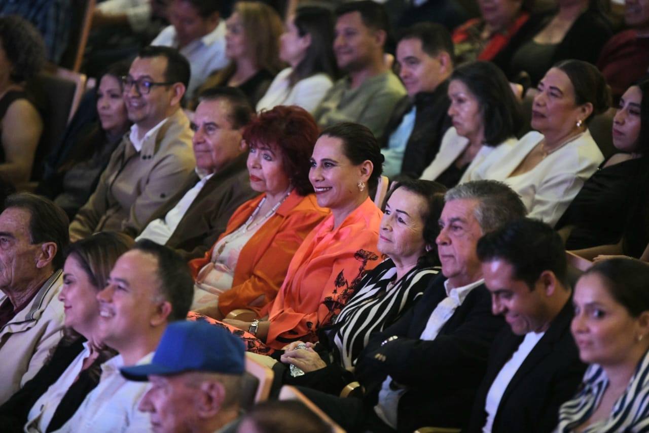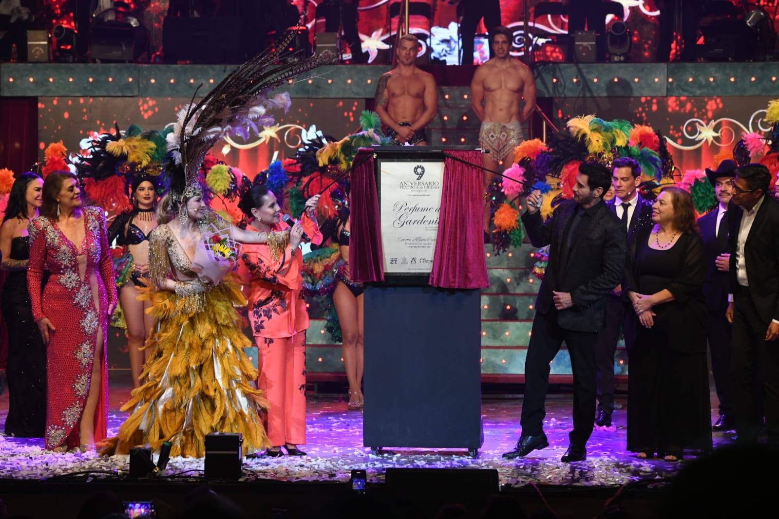 Aracely Arámbula, David Zepeda y la presidenta de Irapuato, Lorena Alfaro García, develaron la placa de este noveno aniversario, para después disfrutar de esta puesta en escena que envolvió al público en la nostalgia y el glamour del cabaret.