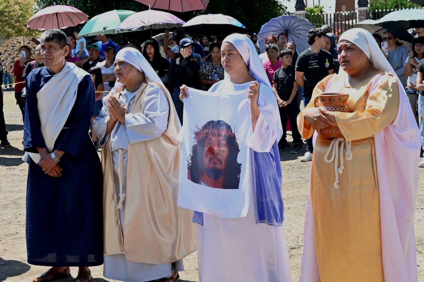 En el trayecto se llevaron a cabo las tres caídas que sufriera el hijo de María y José, mientras que feligreses ataviados con indumentaria de Judas Iscariote, María Magdalena, José y María, acompañaban al Nazareno.