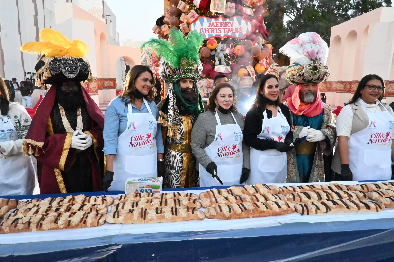 Irapuato, Gto. 06 de enero de 2026. La presidenta municipal de Irapuato, Lorena Alfaro García, encabezó la tradicional celebración del Día de Reyes con el reparto de la tradicional Rosca Monumental en el Centro Histórico de la ciudad.