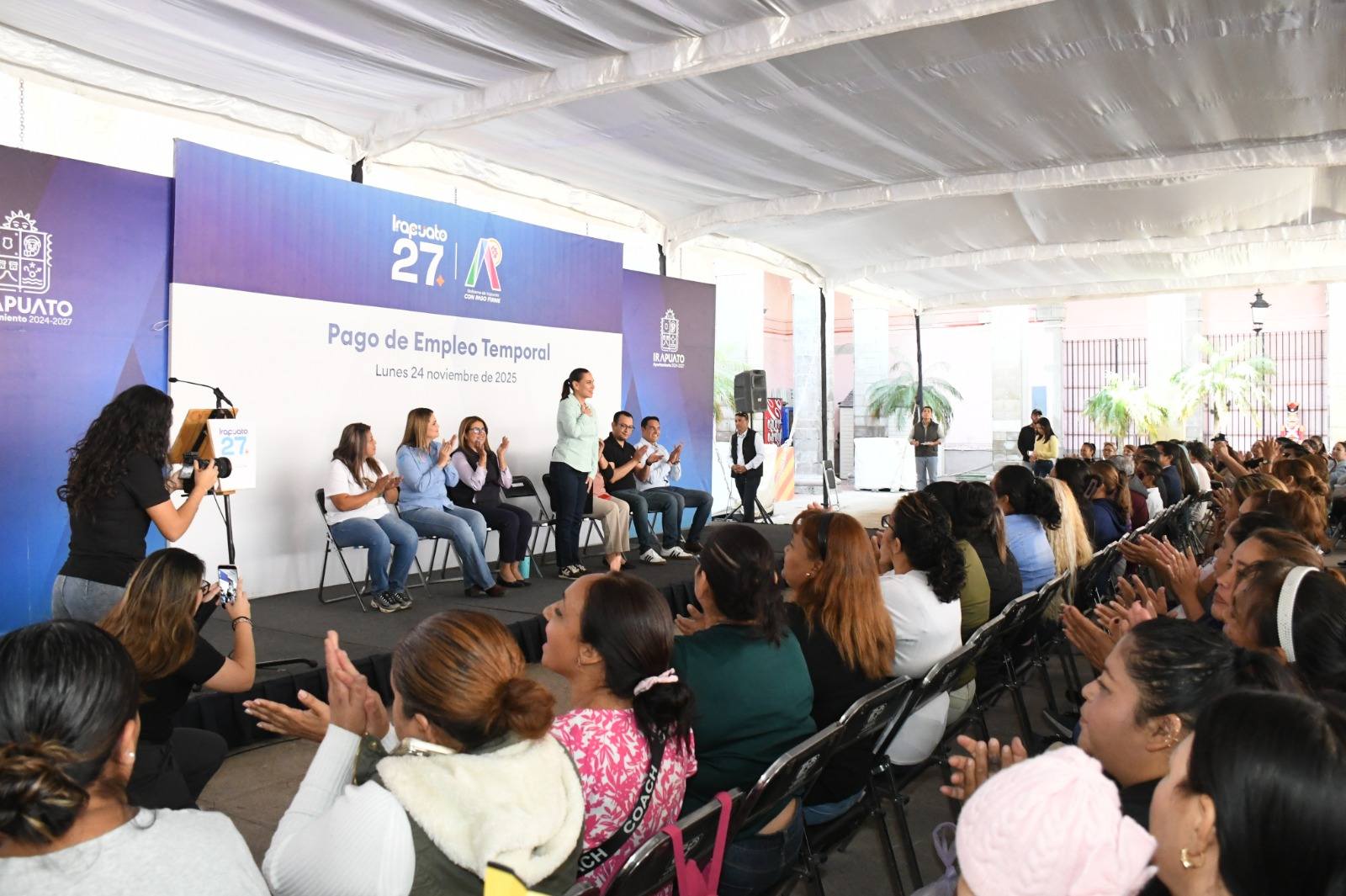 Irapuato, Gto. 24 noviembre del 2025.- Con el objetivo de contribuir al bienestar socioeconómico de las y los irapuatenses mayores de 18 años, el Gobierno Municipal llevó a cabo la entrega de apoyos del programa Empleo Temporal en la Zona Urbana, beneficiando a más de 400 personas.