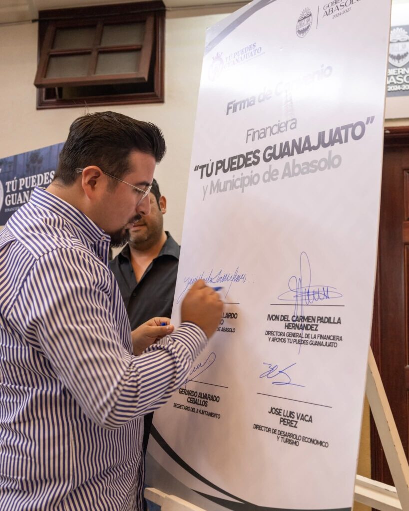Abasolo, Gto. 13 de junio de 2025. En Abasolo, Guanajuato se llevó a cabo la firma del Convenio de Colaboración y la apertura de la Ventanilla de Atención “Tú Puedes Guanajuato”, un espacio diseñado para brindar orientación, atención y acompañamiento a las y los ciudadanos interesados en emprender o fortalecer sus negocios.