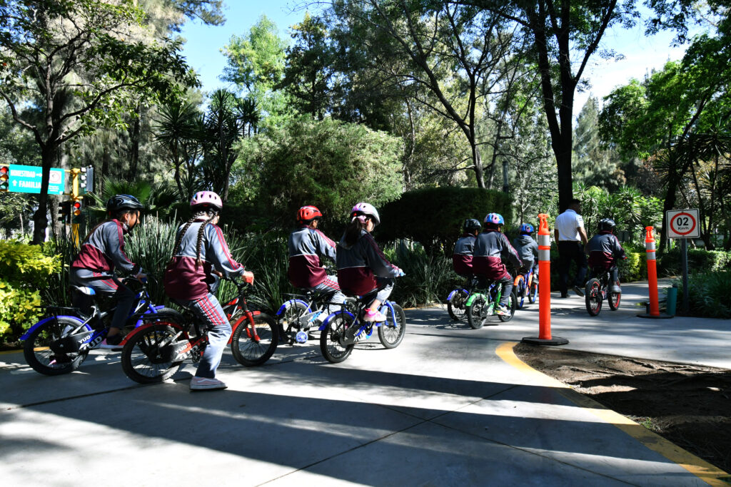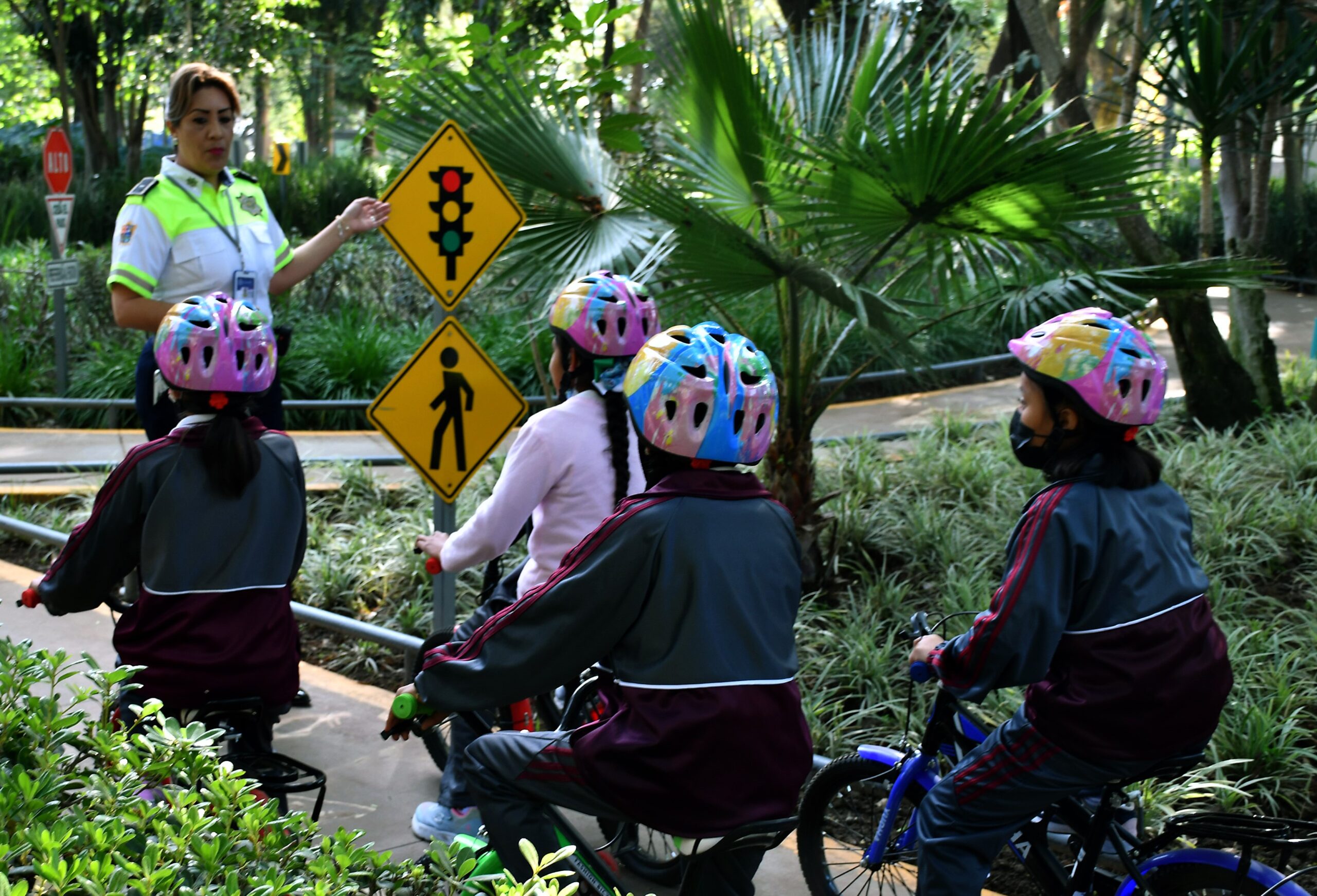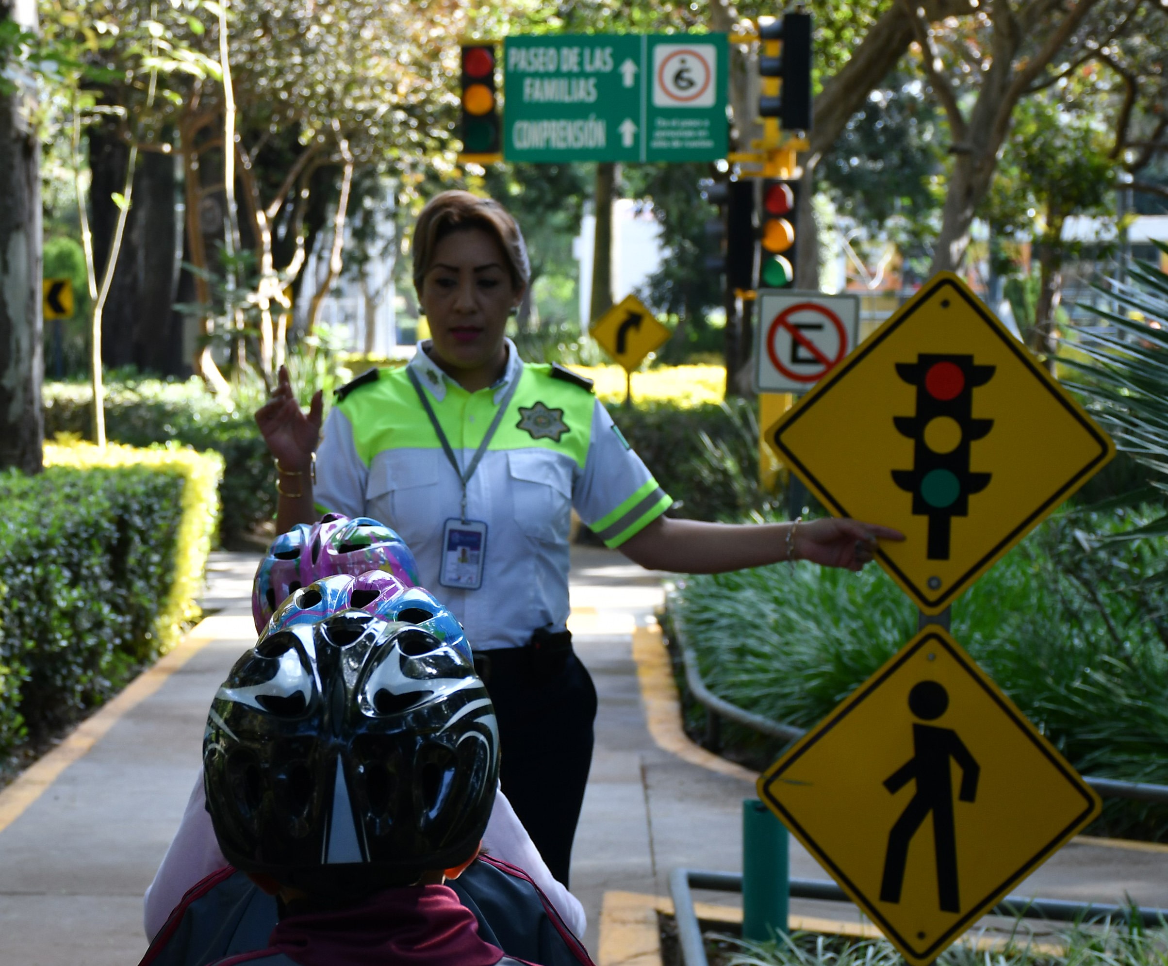 Durante esta dinámica se instruye a las y los menores para que, al conducir una bicicleta, usen casco protector, rodilleras, coderas y reflejantes; además se promueve el uso de las ciclovías de la ciudad para prevenir accidentes.