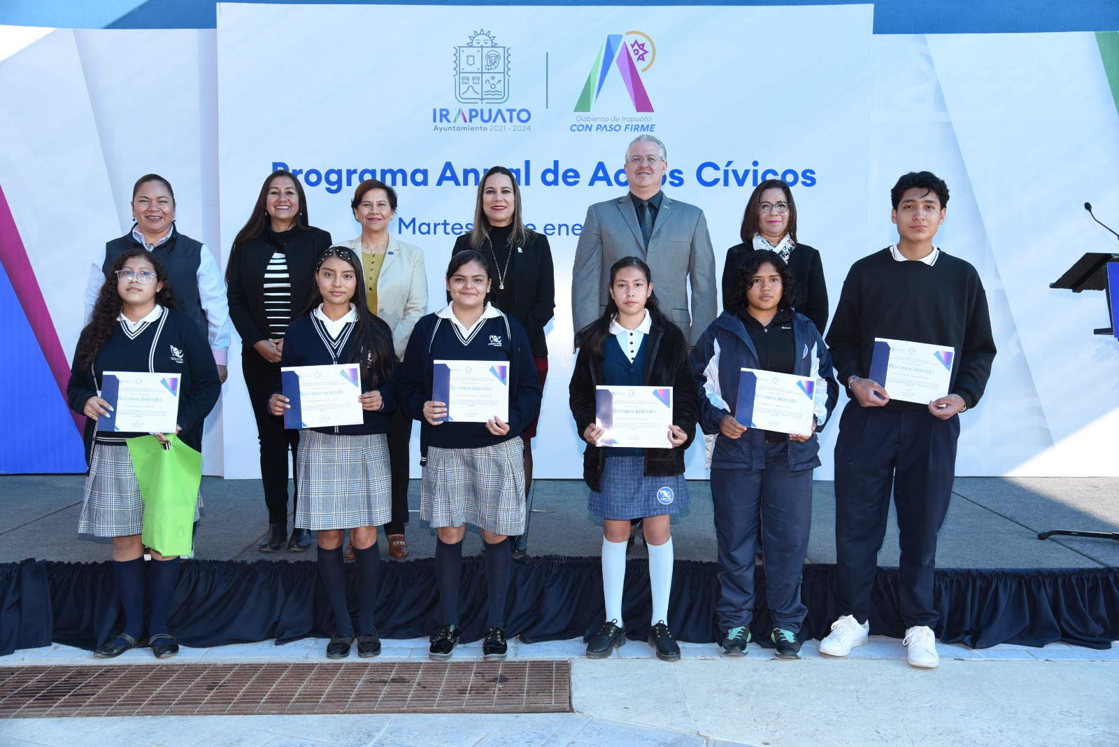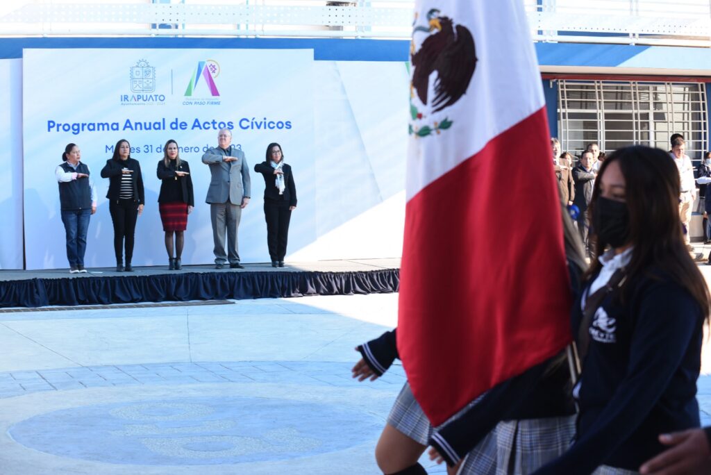 Irapuato, Gto. 31 de enero del 2023.- La importancia de promover los valores, el orgullo y la identidad por la ciudad entre las y los jóvenes es importante, pues genera unión entre la sociedad, por ello el Gobierno de Irapuato implementa el Programa Anual de Actos Cívicos.