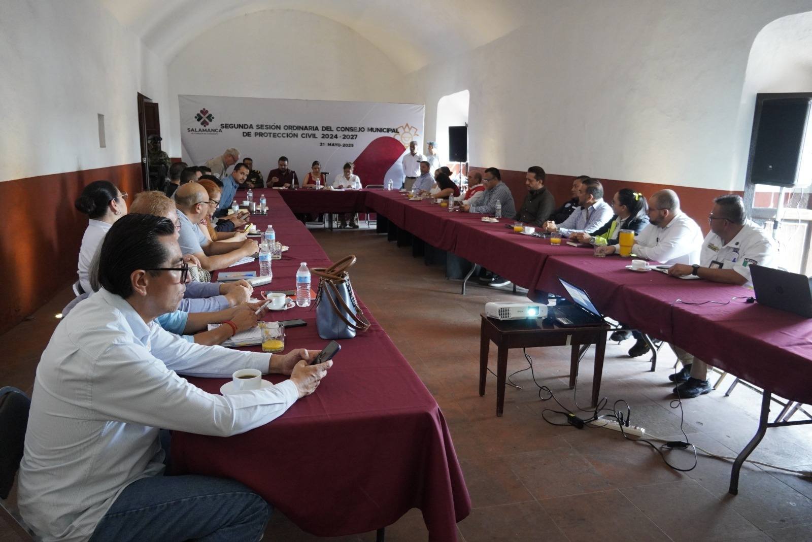 Salamanca, Gto; 22 de mayo de 2025. En cumplimiento de su compromiso con la seguridad de las y los salmantinos, el Gobierno Municipal, a través de la Dirección de Protección Civil, implementó medidas preventivas ante el inicio de la temporada de lluvias y ciclones tropicales, durante la Segunda Sesión Ordinaria del Honorable Consejo Municipal de Protección Civil.