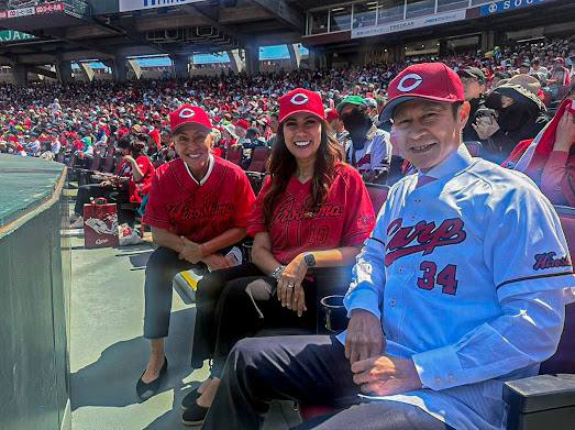 En su primer evento, la Gobernadora asistió al Mazda Zoom-Zoom Stadium Hiroshima para reunirse con el Gobernador, Hidehiko Yuzaki, y presenciar el partido de béisbol entre los equipos Hiroshima Toyo Carp y Nagoya Dragons, en el marco del Festival de las Flores de Hiroshima, en donde se tuvo la asistencia de más de 30 mil personas.
