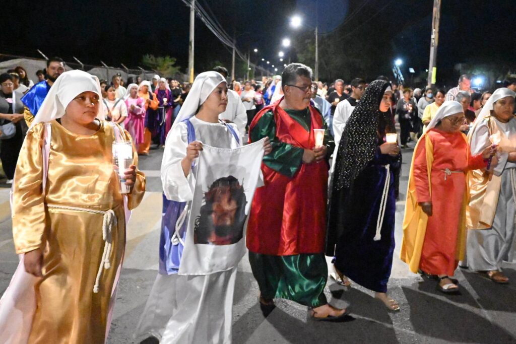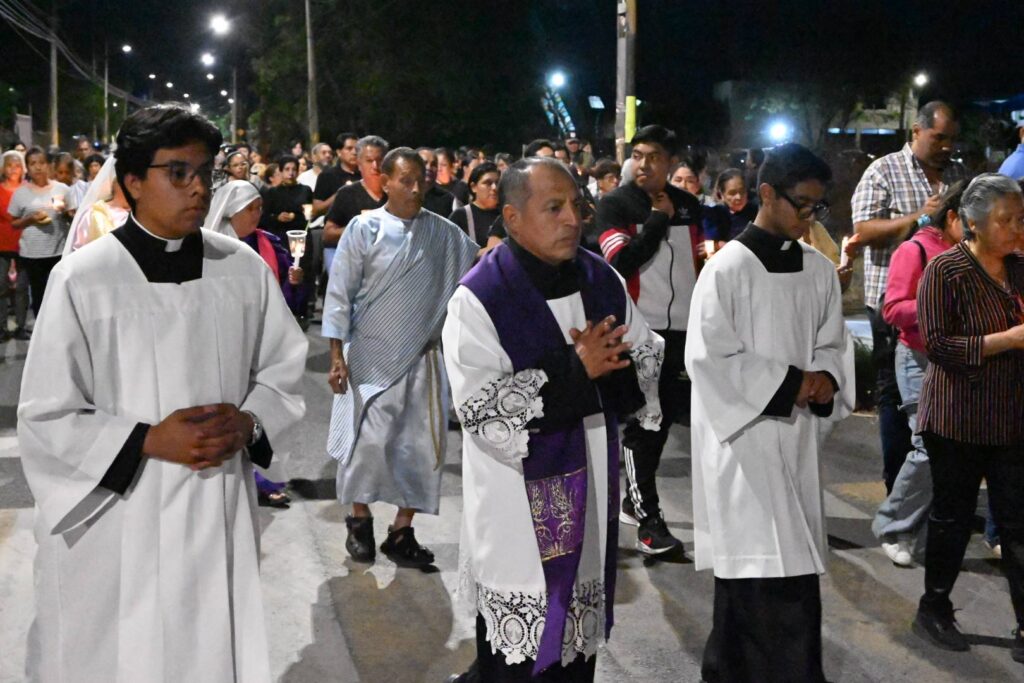 Los fieles recorren las calles de la colonia valle del sol y fraccionamiento el Refugio acompañando imágenes religiosas, destacando el luto de la Iglesia.