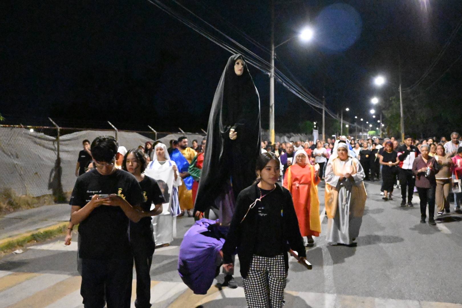 Los fieles recorren las calles de la colonia valle del sol y fraccionamiento el Refugio acompañando imágenes religiosas, destacando el luto de la Iglesia.