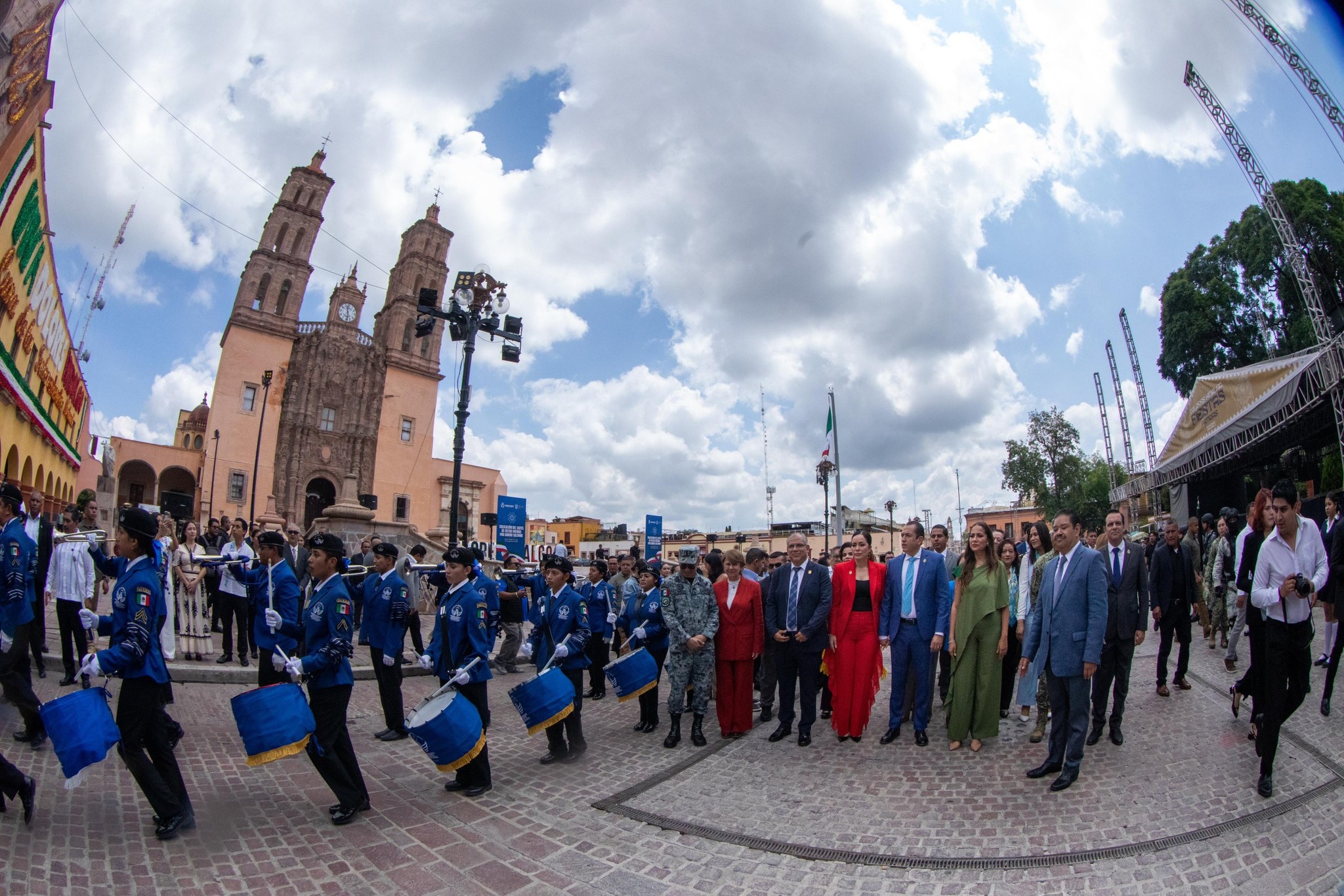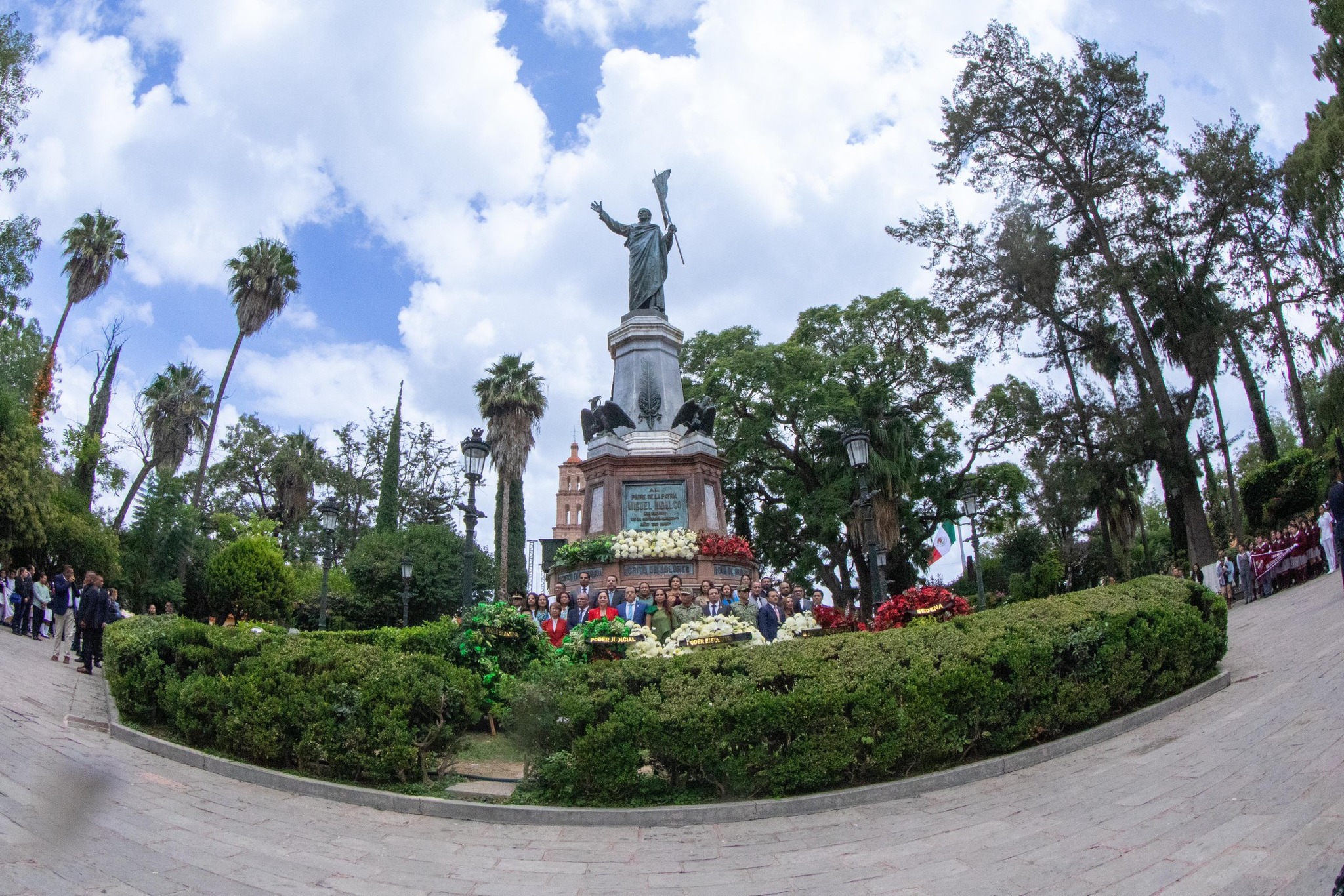 La ceremonia incluyó un momento solemne frente al Monumento a Hidalgo, donde la Gobernadora y las autoridades montaron una guardia de honor, rindiendo tributo al Padre de la Patria.