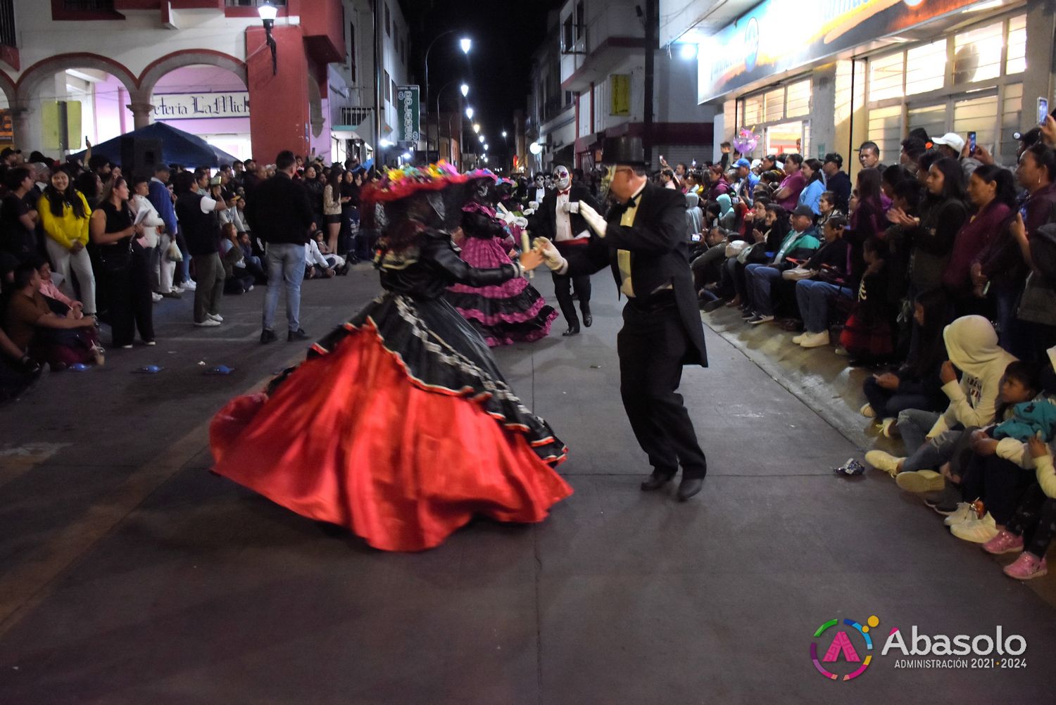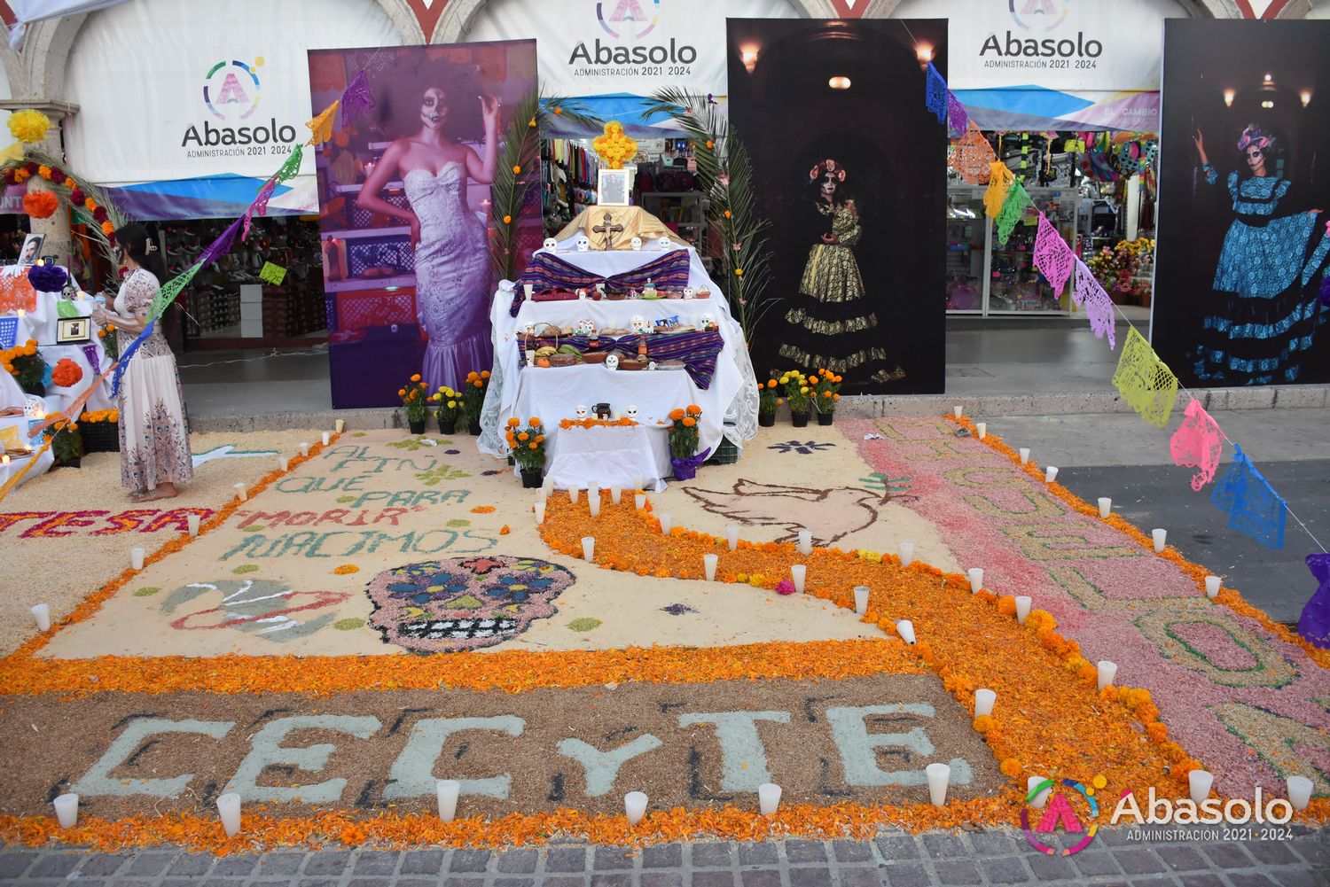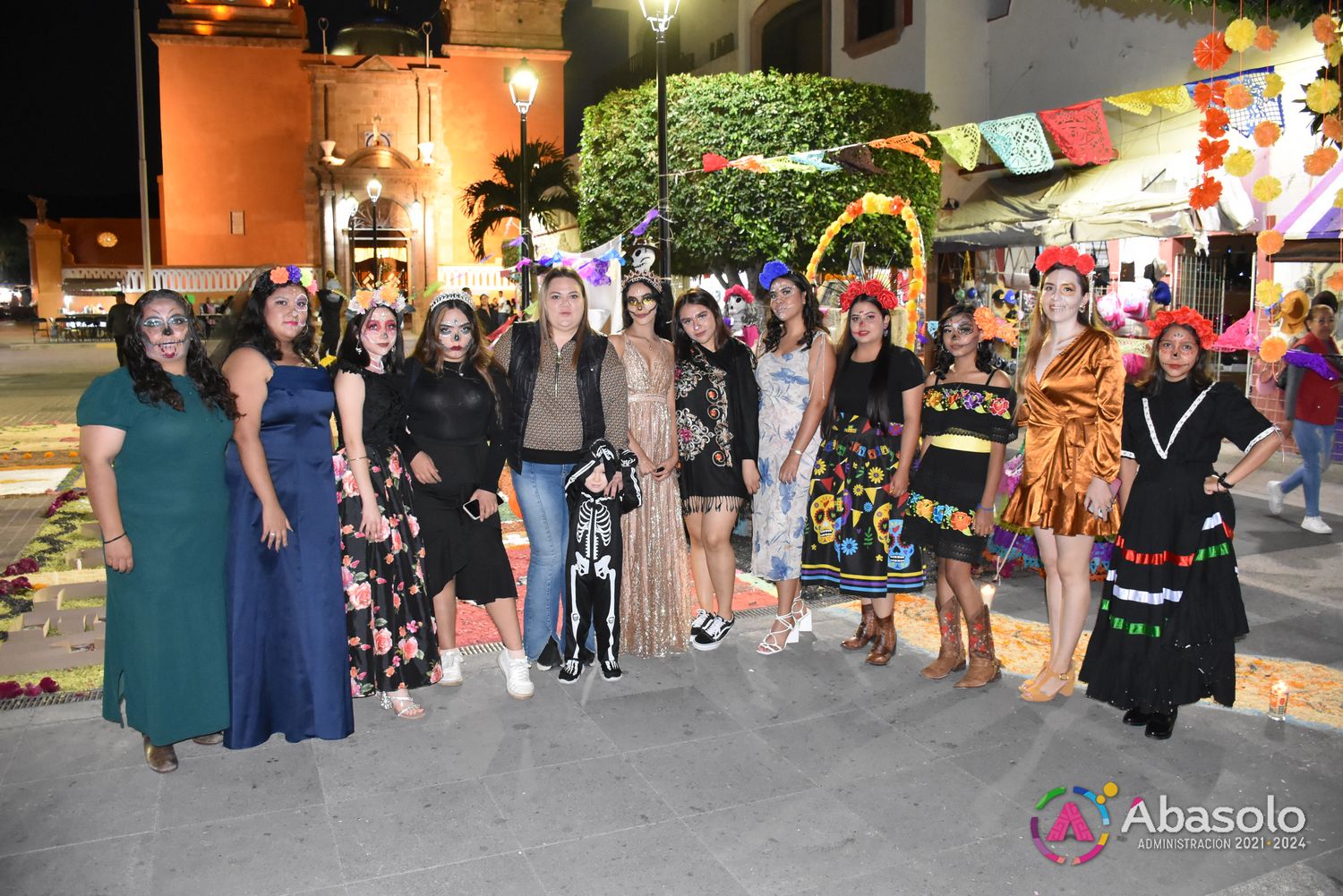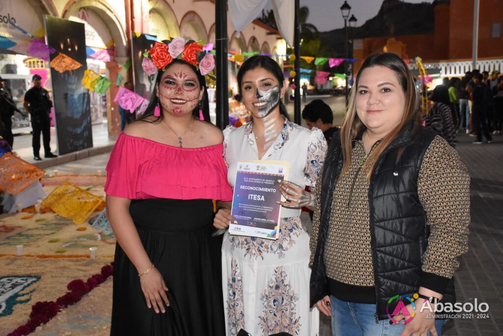 Poco después, el público disfrutó del tradicional Desfile de Catrinas del CECyTE Abasolo 2023, al cual se unieron Instituciones y Dependencias Municipales, como la Secundaria Federal Nicolás Bravo, la Universidad Continente Americano, Universidad de las Culturas, DIF Abasolo y Club Ciclista Fridas en Bici, con diferentes temáticas y personajes caracterizados como Catrinas.