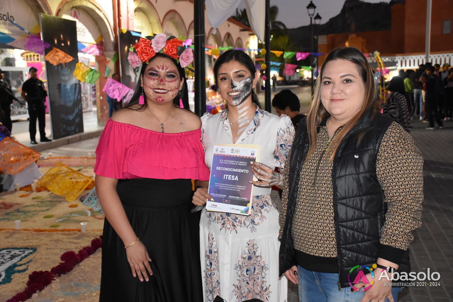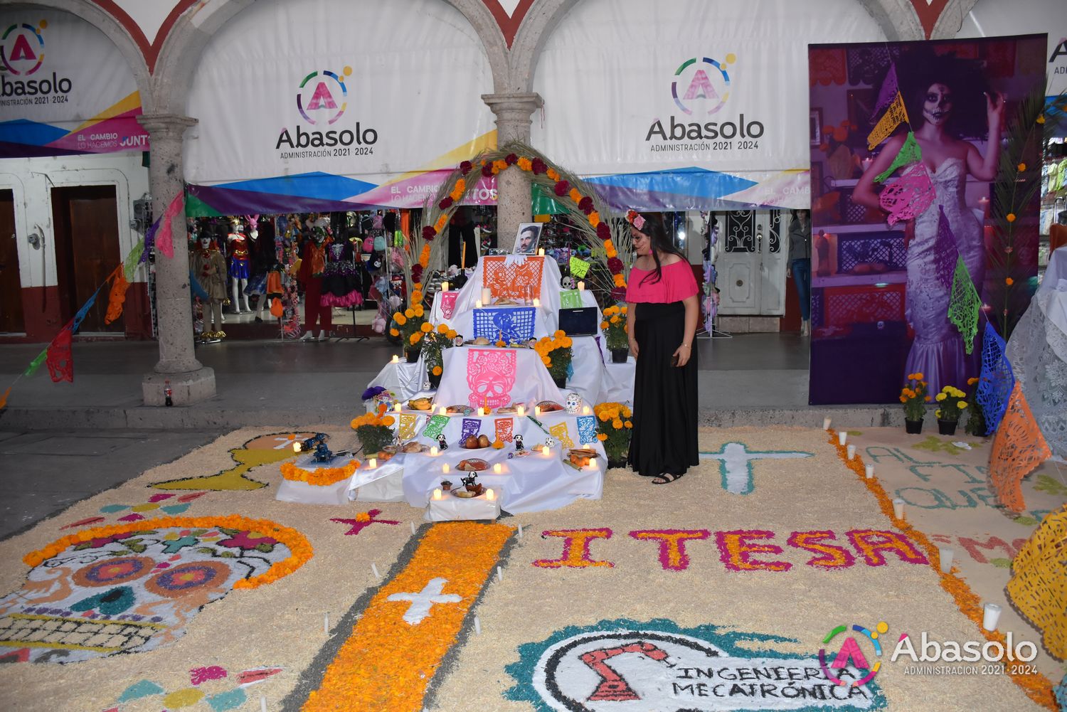 Abasolo, Gto. 01 de noviembre de 2023.- En el Centro Histórico de Abasolo, la noche del 01 de Noviembre, se llevaron a cabo eventos conmemorativos al Día de Muertos, primeramente con la Muestra de Altares, elaborados por las Instituciones Educativas SABES, CECyTE, ITESA, EDUCEM y Universidad de las Culturas, dedicando sus Altares a personajes, excompañeros y maestros fallecidos.