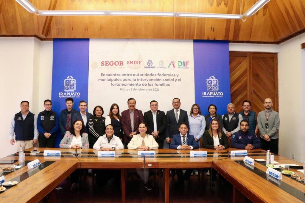 Irapuato Gto a 03 de febrero del 2026.-Con el objetivo de fortalecer la paz social y el bienestar de las familias irapuatenses, se llevó a cabo un encuentro entre autoridades federales, estatales y municipales para impulsar acciones de intervención social y fortalecimiento familiar, refrendando la apertura y disposición del Gobierno Municipal para trabajar de manera coordinada con la Federación y el Estado.