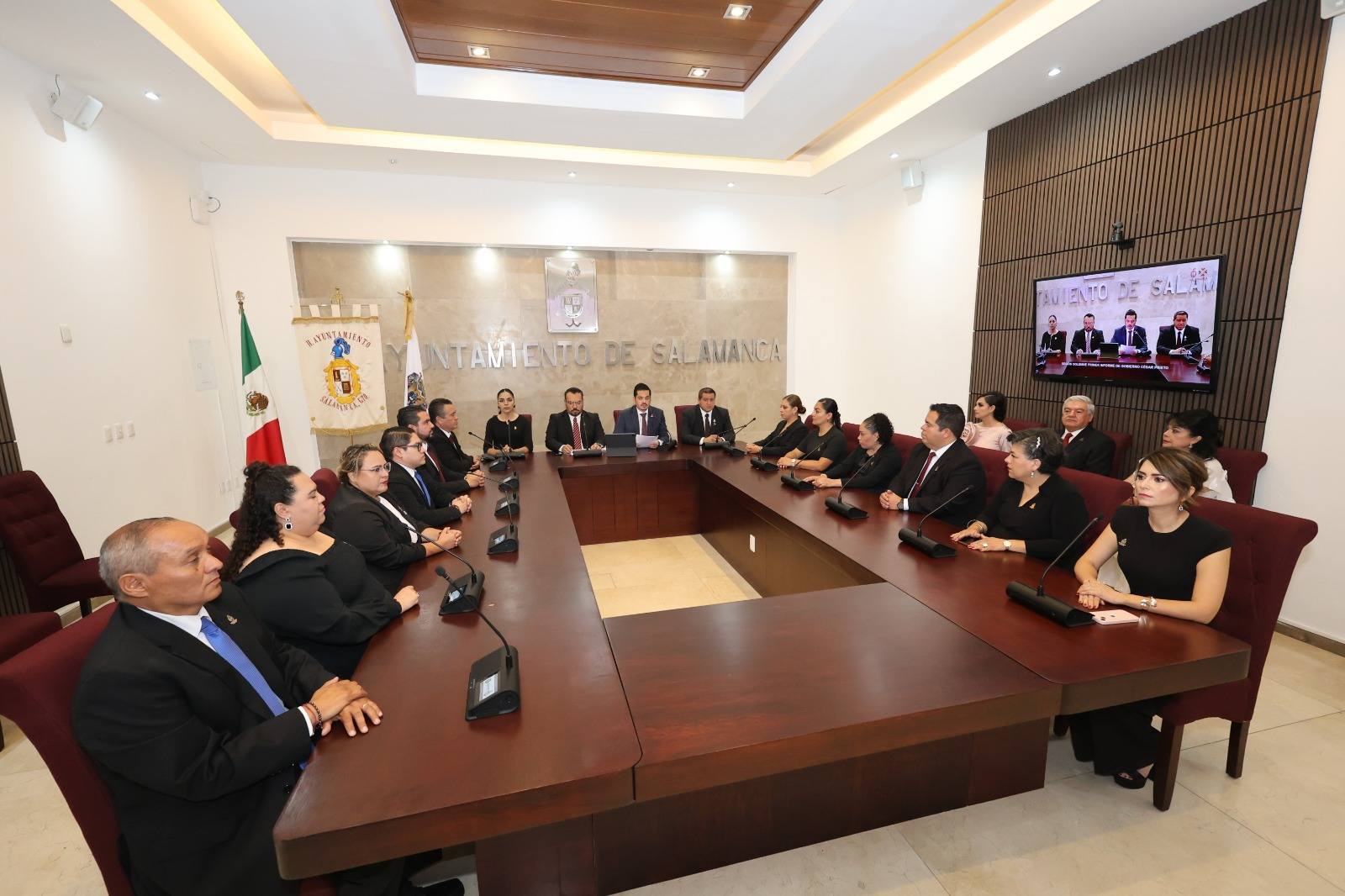 Durante su mensaje, el primer edil, subrayó que los avances alcanzados son resultado del trabajo en equipo y del compromiso conjunto para sentar las bases de un progreso social y urbano sólido en Salamanca.
