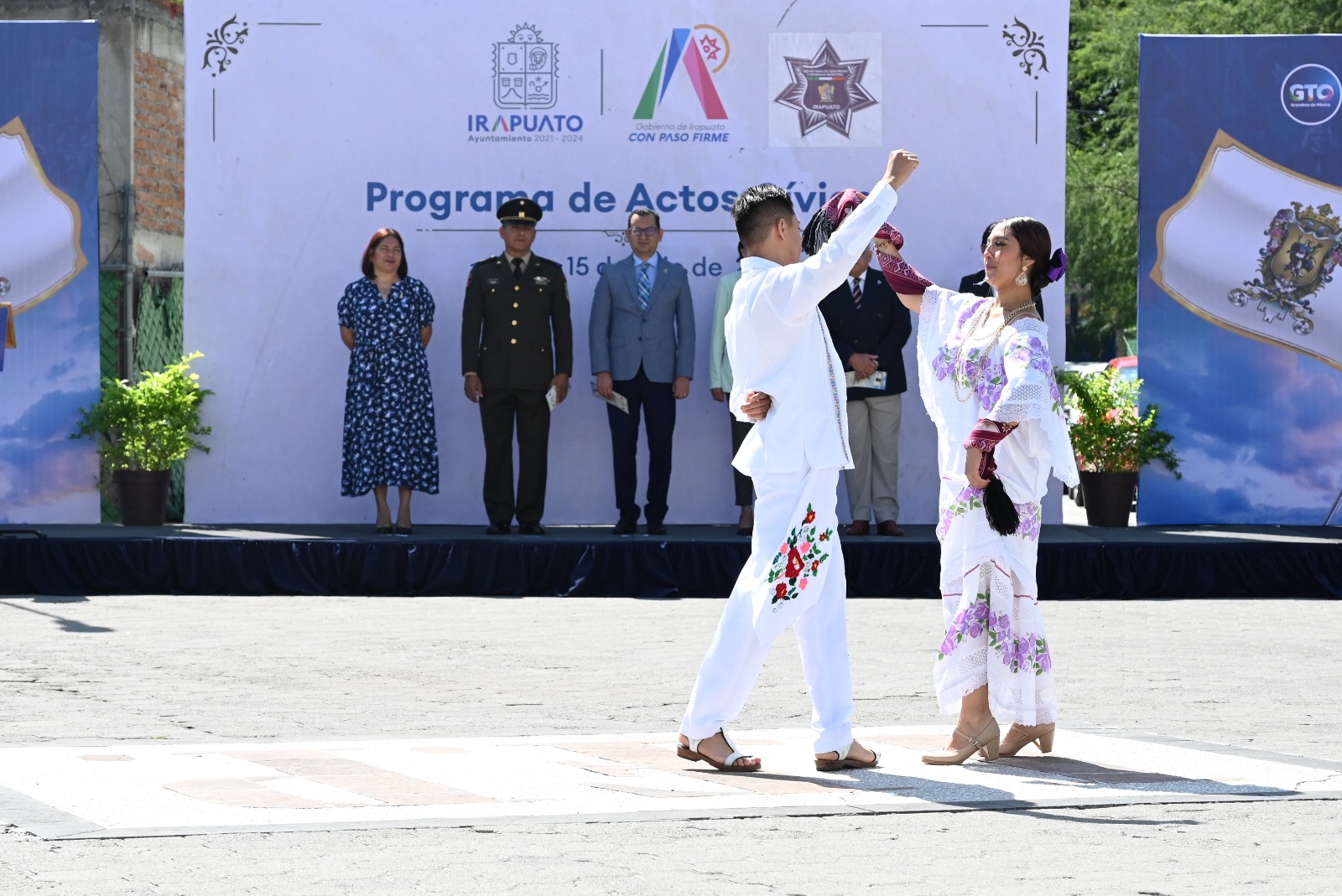 En esta ocasión, se entonó el himno de Guanajuato, que recientemente fue seleccionado por autoridades estatales y del Congreso del Estado, además de contar con la participación del grupo de danza Mexica.