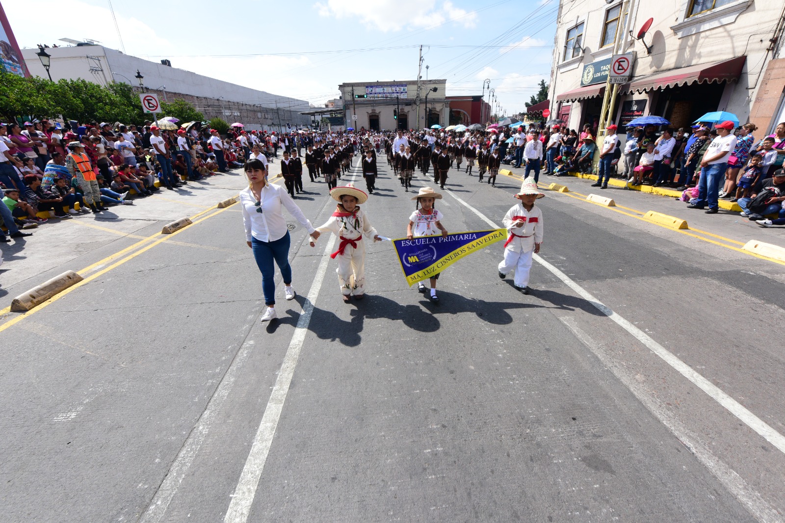 El desfile dio inicio a las 10:00 de la mañana, con la participación de personal militar, Policía Municipal, Bomberos, Protección Civil, Tránsito Municipal, además de instituciones educativas de distintos niveles, el Pentathlón y la Asociación de Charros y la Cruz Roja Mexicana.