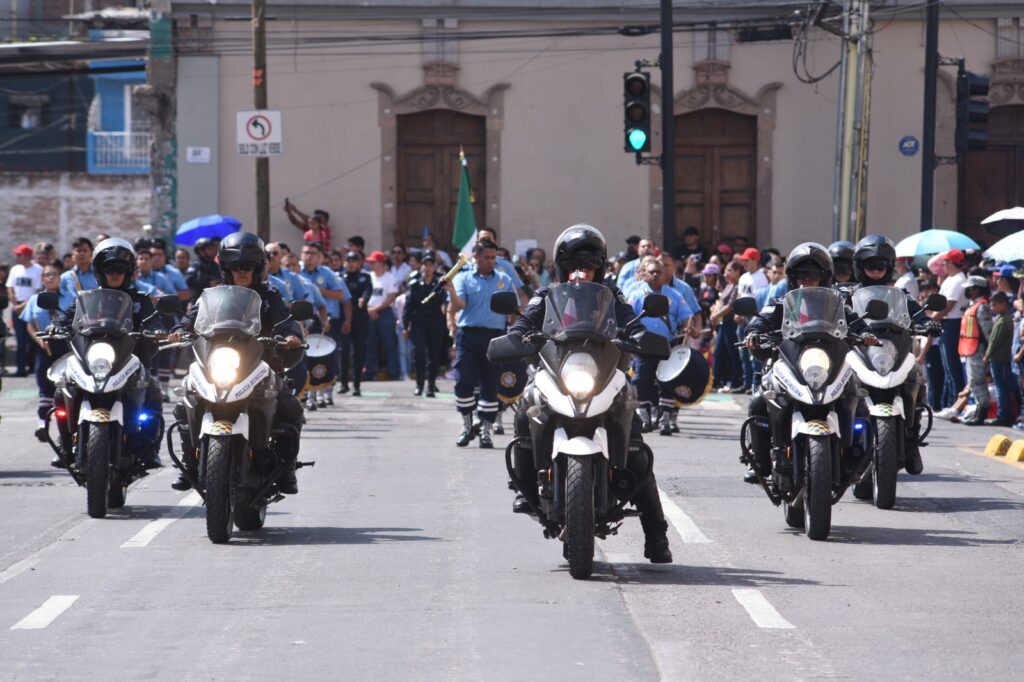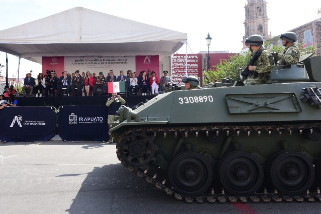 “Desfilaron ante el Municipio de Irapuato Guanajuato, 28 banderas de guerra, 350 integrantes el Ejército Mexicano y Guardia Nacional, 70 elementos del Servicio Militar Nacional, 187 elementos de Seguridad Pública, 14 elementos de Tránsito, 60 Bomberos, 20 elementos de Cruz Roja, 40 elementos de Protección Civil, 52 planteles educativos, 65 elementos de la Asociación de Charros de Irapuato, 33 vehículos y 9 vehículos blindados, una ambulancia, 20 motocicletas, 8 canes, 73 caballos”, finalizó.