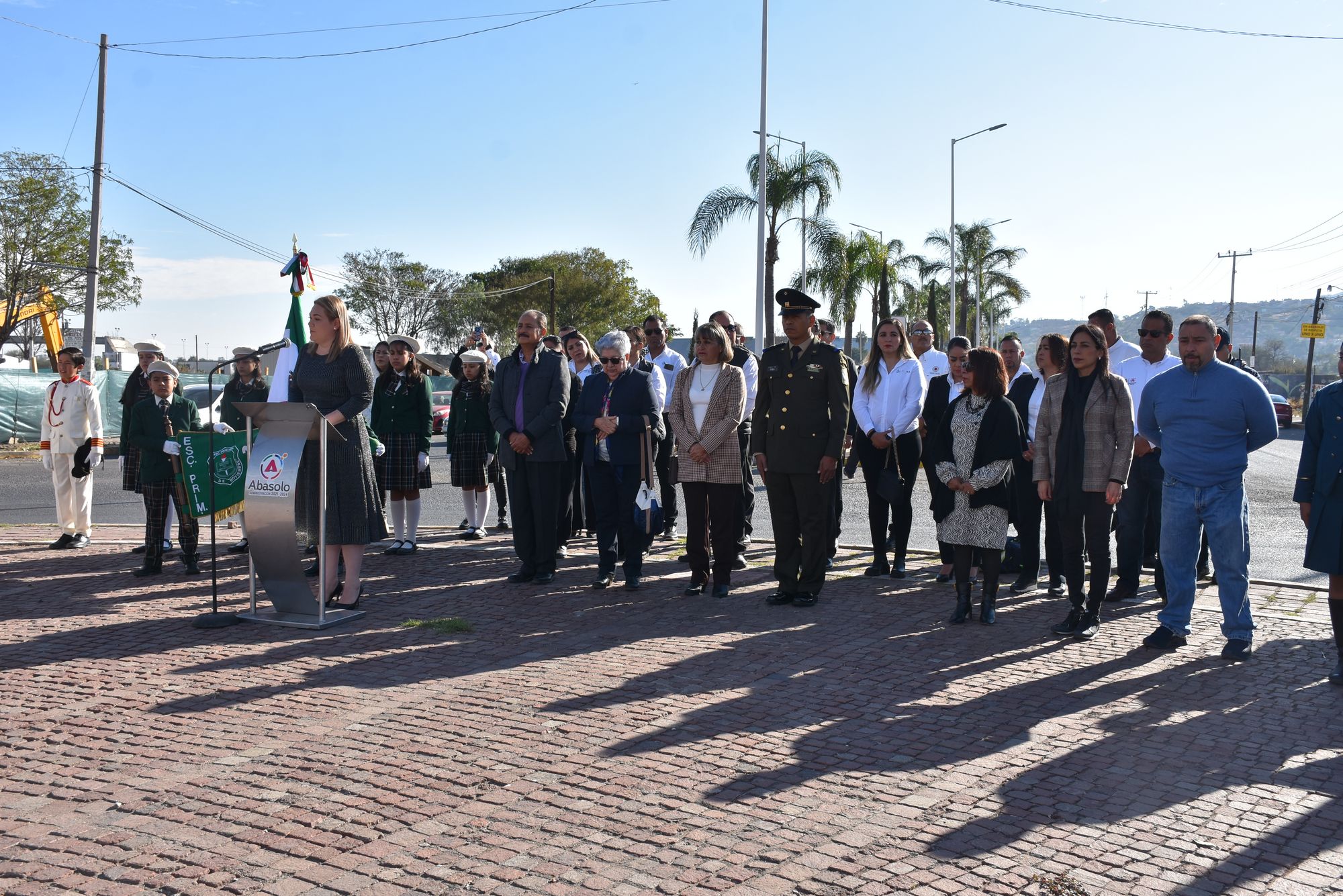 Abasolo, Gto. 29 de enero de 2024.- La Presidenta Municipal de Abasolo, Rocío Cervantes Barba, encabezó la ceremonia de Izamiento de Bandera en la Glorieta del Blvd. Guerrero, en la que participaron militares de la 16ª Zona Militar, representados por el Capitán Gabriel Ángel Seba Málaga, así como la Jefa de Sector 19 de Educación Preescolar, Martina Corona Ruiz, integrantes del H. Ayuntamiento, Directoras, Directores de la Administración Pública Municipal, Escoltas de diferentes Instituciones Escolares y Banda de Guerra del ITESA.