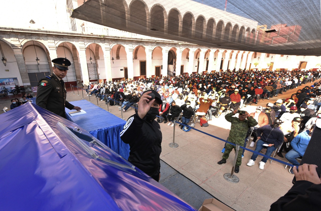 Irapuato, Gto. 27 de noviembre del 2022.- Jóvenes irapuatenses participaron en el Sorteo Militar en el patio de la Presidencia Municipal. Este año se inscribieron mil 736 jóvenes, de los cuales mil 236 resultaron bolas negras y 500 bolas blancas.