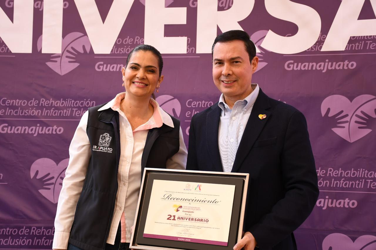 En representación de la alcaldesa Lorena Alfaro García, la presidenta del Sistema DIF Irapuato, Valeria Alfaro García, asistió a la celebración del 21 aniversario del Centro de Rehabilitación e Inclusión Infantil Teletón, para reconocer el beneficio en las vidas de niñas, niños y jóvenes con discapacidad, autismo y cáncer.