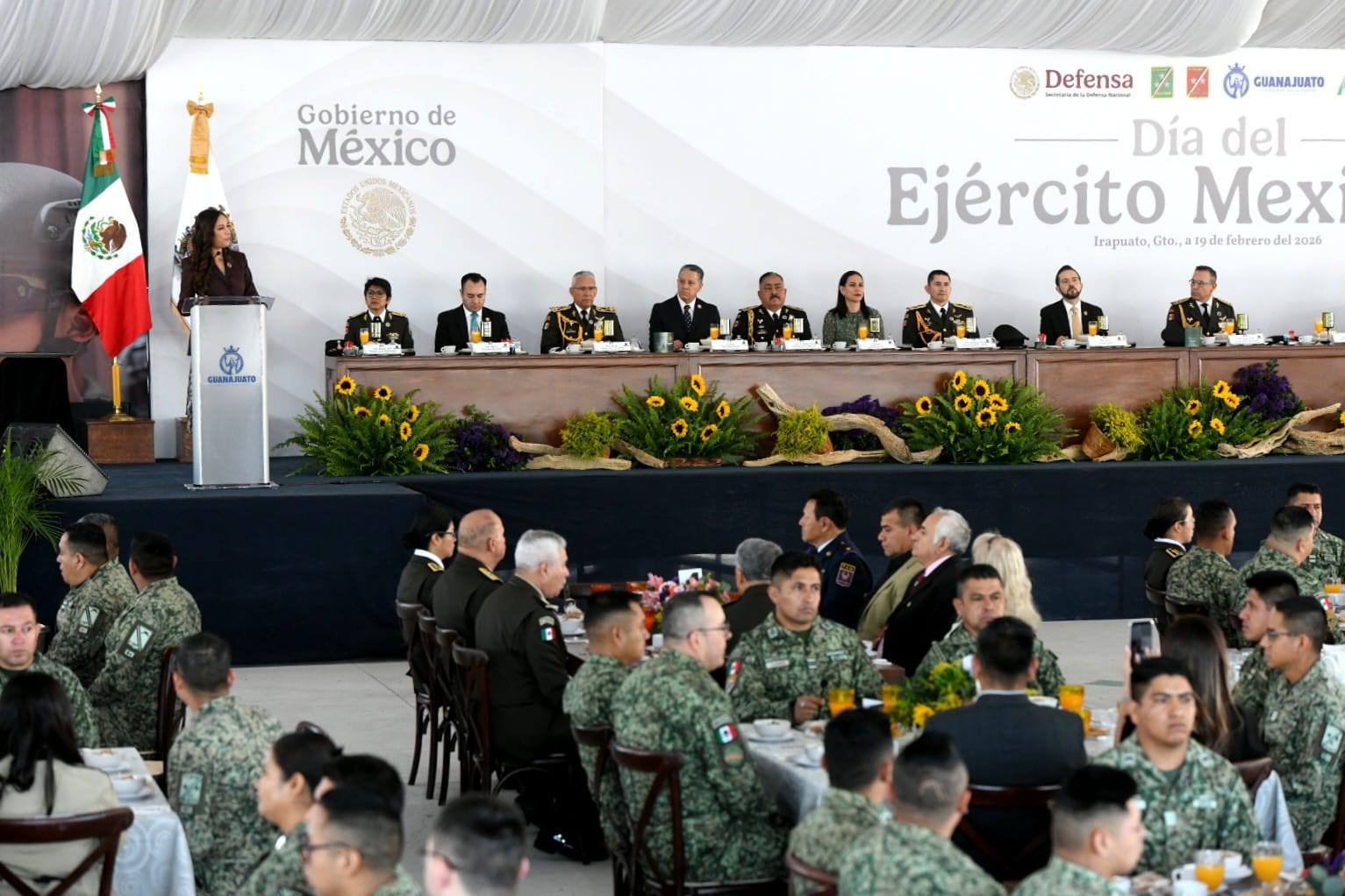 Libia Dennise García Muñoz Ledo, gobernadora del Estado de Guanajuato, agradeció la presencia cotidiana que tiene el Ejército Mexicano en Guanajuato, la cual se expresa con el trabajo coordinado con autoridades locales y la sociedad, así mismo reconoció la calidad humana que distingue a las y los soldados de México.