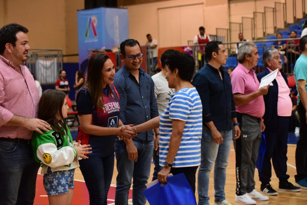 Durante el medio tiempo del partido de Los Freseros vs Panteras, Lorena Alfaro García, presidenta municipal, señaló que es importante reconocer el mérito de todas aquellas personas que, con su ejemplo, inspiran a nuevas generaciones.
