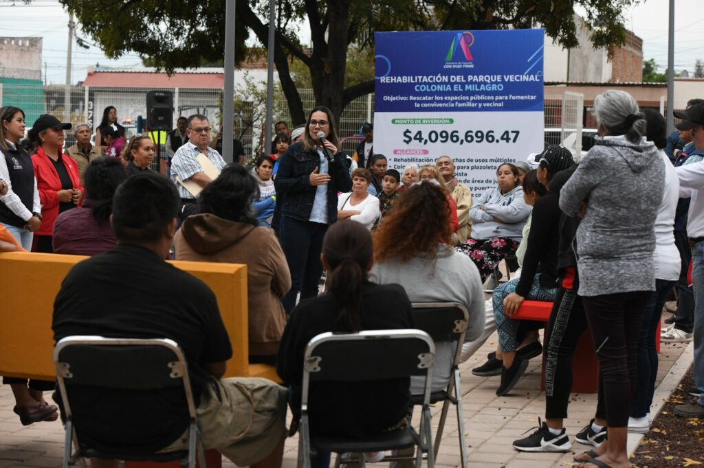 Irapuato, Gto. 16 de marzo del 2023.- Vecinos de las colonias El Milagro y La Florida ya tienen parques vecinales dignos para convivir, ejercitarse y realizar actividades al aire libre.