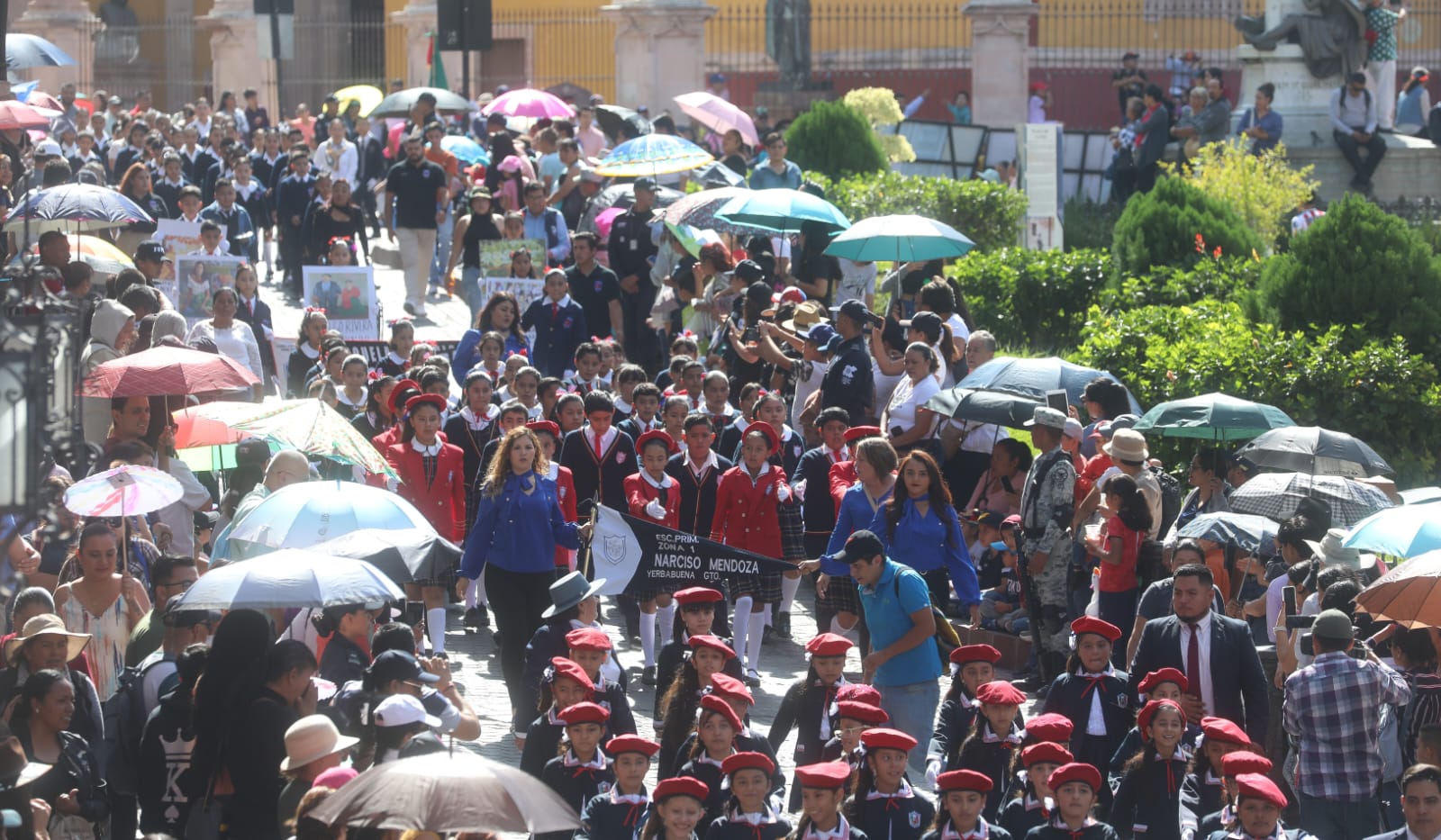 Previo a la Ceremonia del Fuego Simbólico de la Independencia, el Gobernador Diego Sinhue, acompañado de las autoridades, participó en el tradicional Desfile Cívico – Militar y avanzó desde el Jardín de Embajadoras hasta el Museo Palacio de los Poderes.